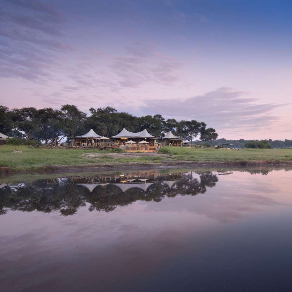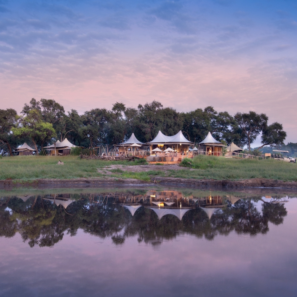 From the camp’s position on the banks of the river, you can see the Great Rift Valley on the opposite side of the Zambezi, a view which you can take in from the comfortable star-gazing deck. Each of the ten tented rooms have indoor and outdoor showers. And there’s a dining and lounge area, plus an infinity pool for cooling off after a safari.
