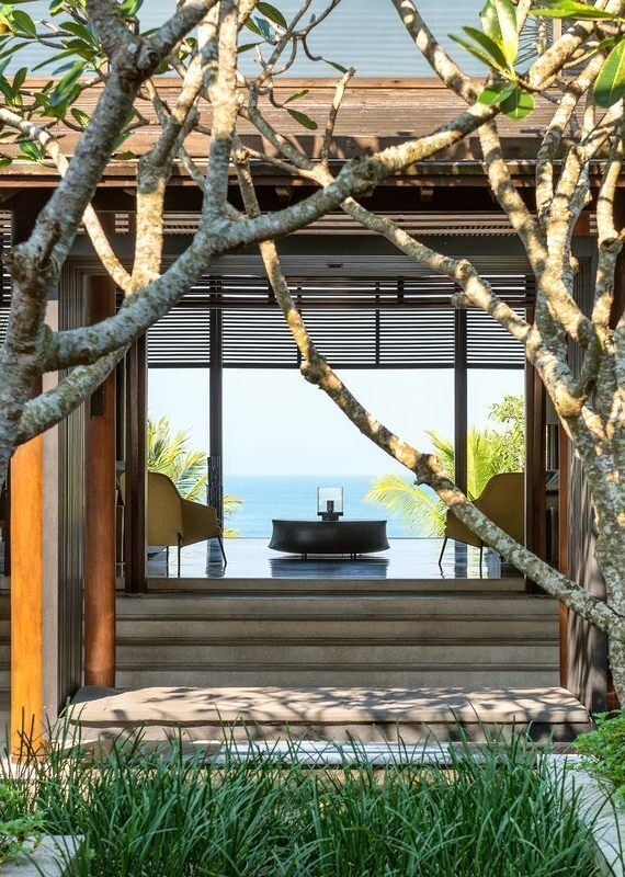 Most of Nirjhara’s villas are hidden among the twisting trunks and leaves of the jungle, but the Canopy Suite stands out; this elevated structure is designed to provide the best possible views. The resort also boasts a saltwater pool, cinema, library and open–air yoga pavilion.