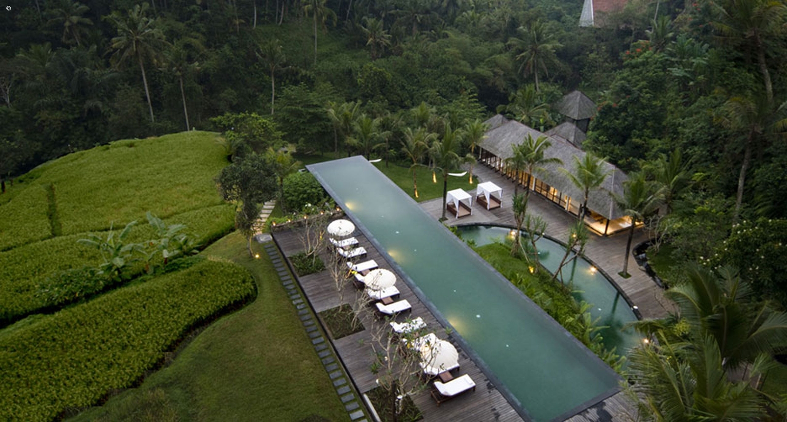 Nestled along the Campuhan river valley, overlooking sloping rice fields and coconuts grove is Komaneka at Bisma. This luxurious resort offers a myriad of contemporary amenities to create a stylish and lavish home environment.