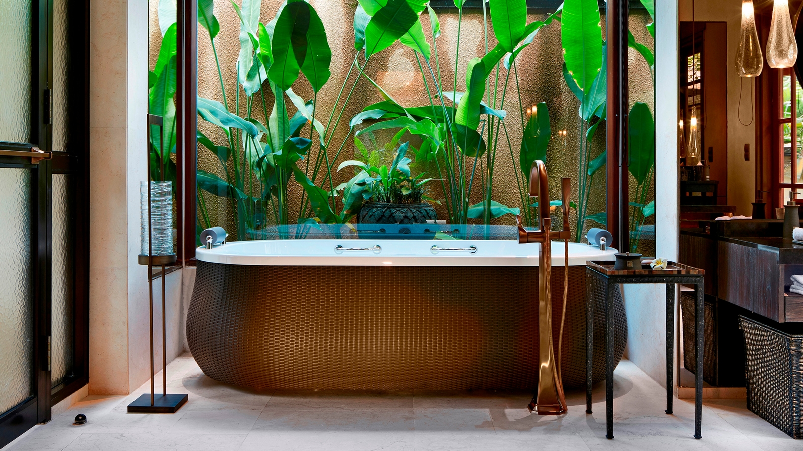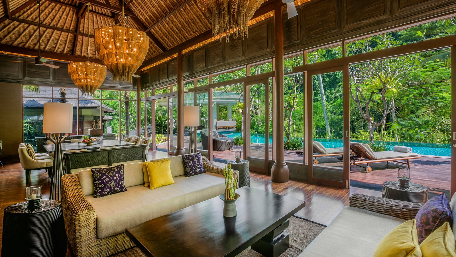 60 spacious suites and one, two and three bedroomed pool villas are a contemporary showcase of Balinese architecture and craftsmanship. All enjoy views over the river or lush valley, as well as large bathrooms with a sumptuous tub.