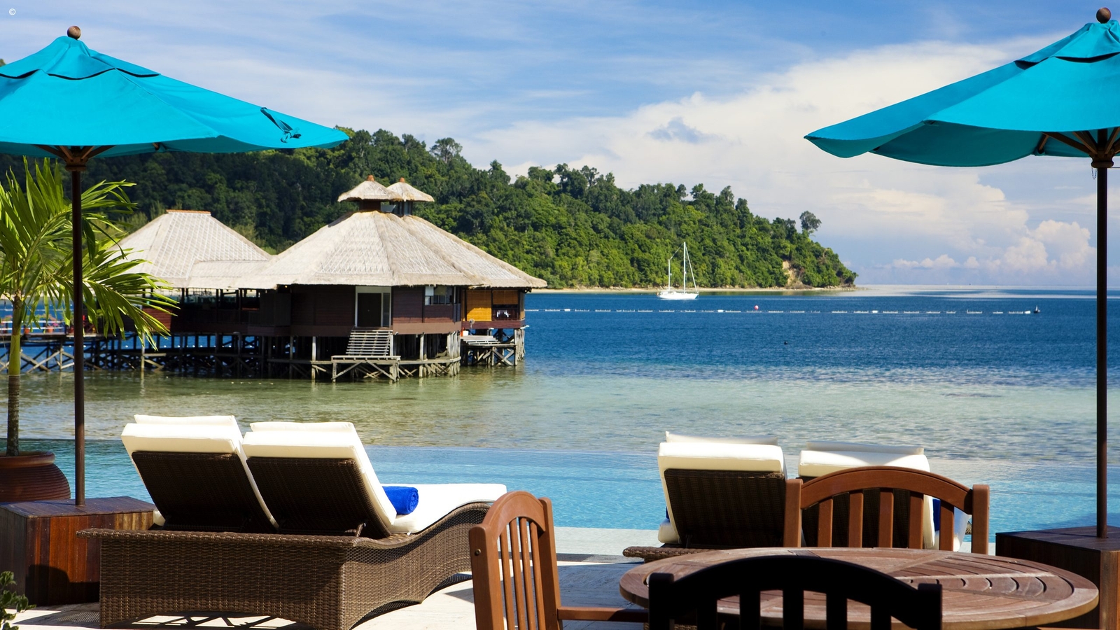 The environmentally conscious resort boasts 52 sumptuous villas which not only sit out on the water but command views of the impressive Mount Kinabalu. The villas combines neat local style with an array of modern comforts.