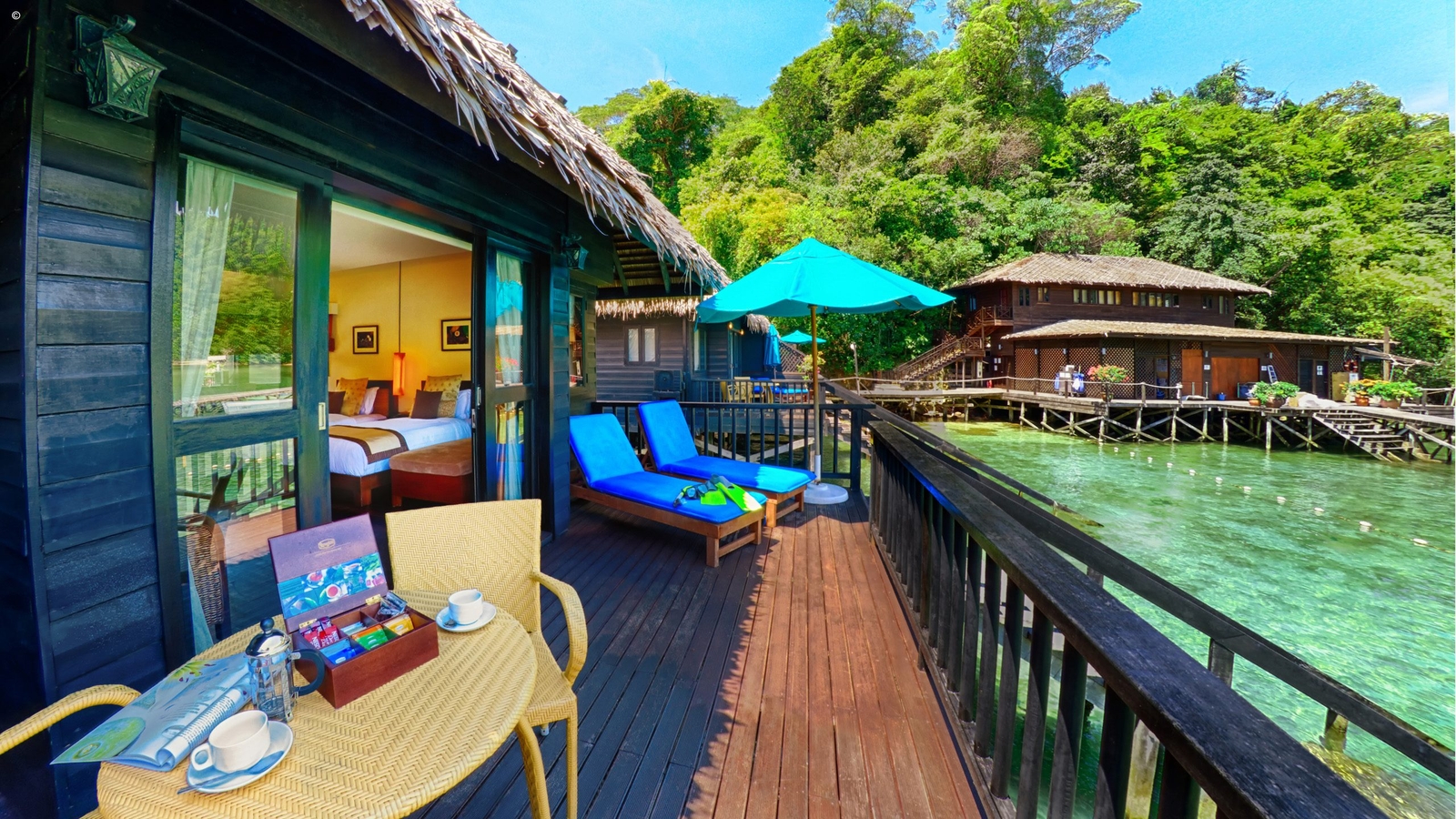Eco villas suspended over the water of this emerald island