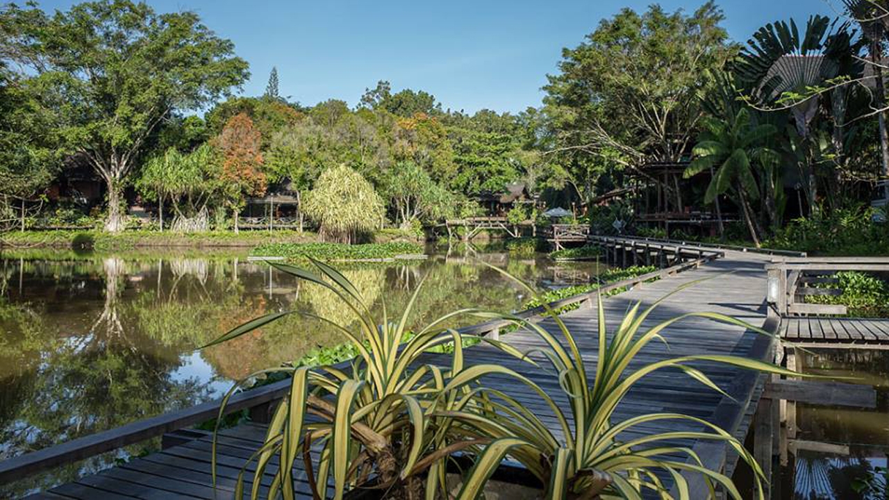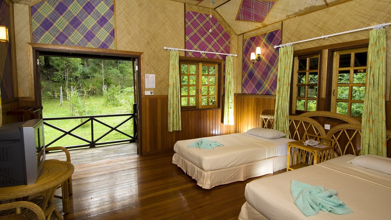 All sixty of the comfortable chalets come with air conditioning, traditional interiors and private verandas that give you good views.