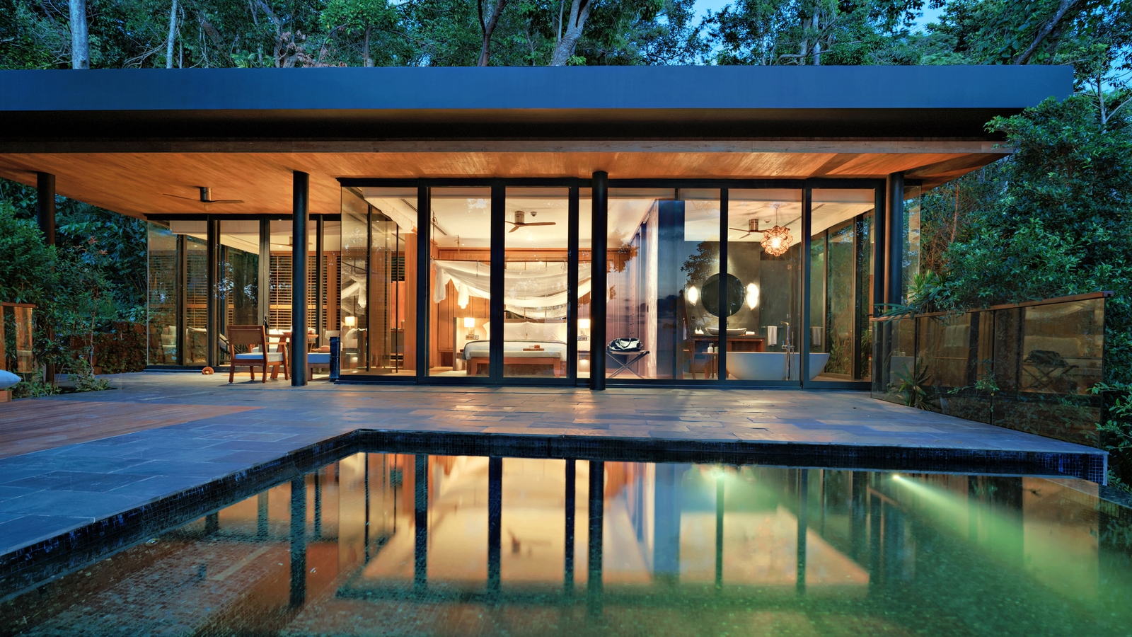 Guests will arrive at the mainland reception before a short water transfer to the island. There’re 40 private pool villas, which blend seamlessly into the surroundings without compromising on luxury. Spacious interiors, beautiful en-suite bathrooms and living rooms with a day bed offer ultimate comfort, and a soft, neutral colour scheme works with the natural environment. Each villa opens out onto a decking area with a private plunge pool.