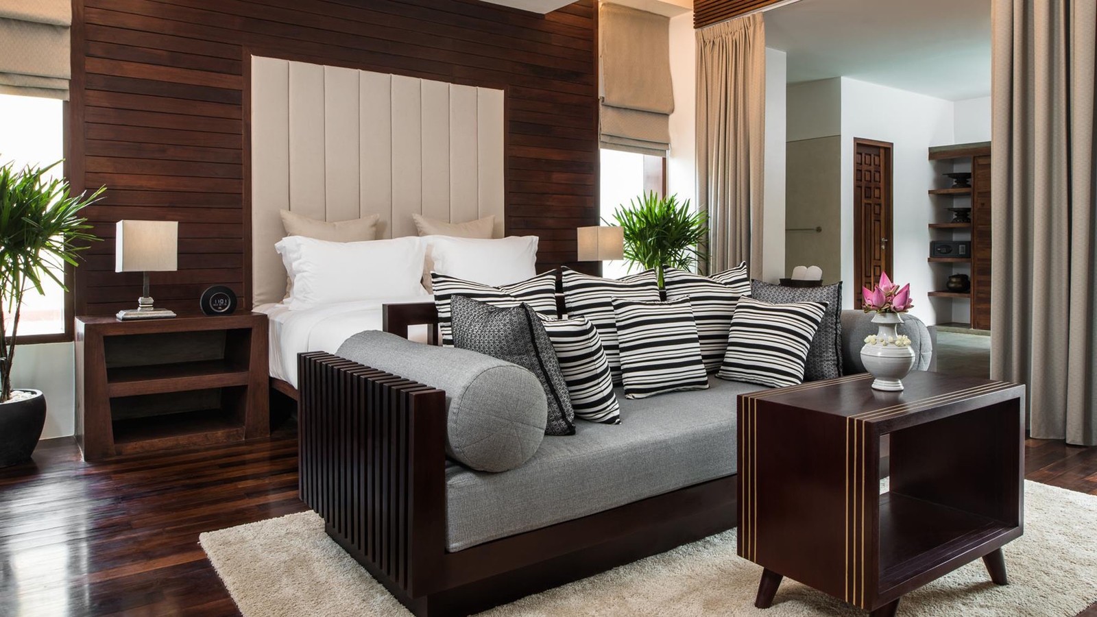 There are 36 rooms to choose from, offering either a balcony or direct garden and pool access. Contemporary furnishings, muted tones with the occasional bright pop of colour, and deluxe fabrics make each spacious room and suite a tranquil oasis in which to relax in the utmost comfort.