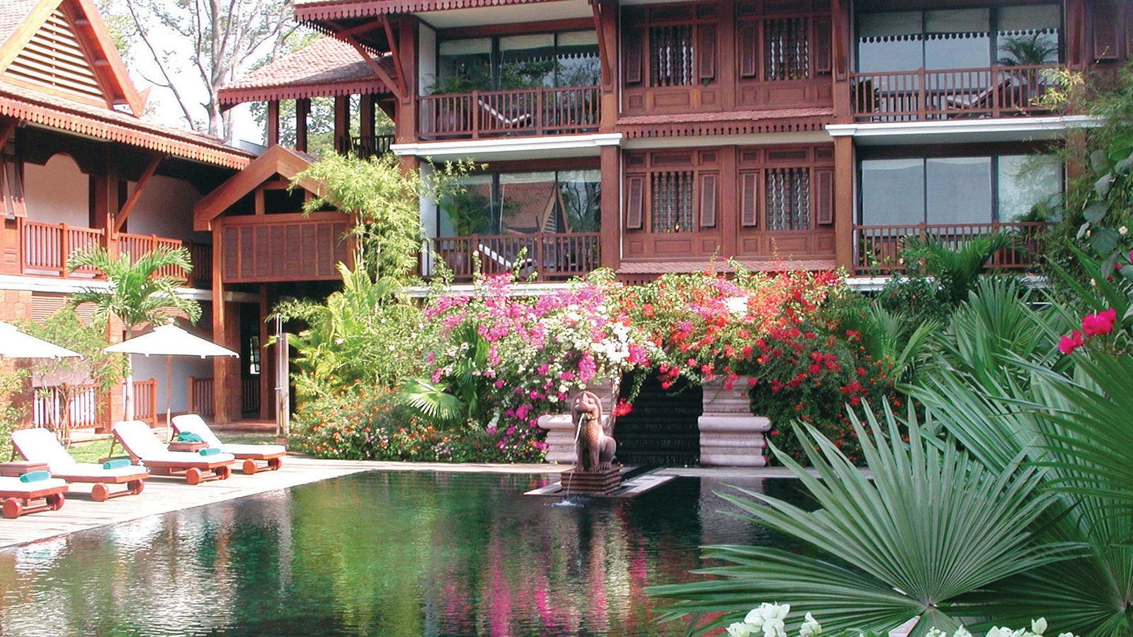 This hotel’s high walls hide vibrant, fragrant gardens filled with bougainvillea, frangipani and soaring palms that are La Residence D’Angkor’s enchanting setting.
