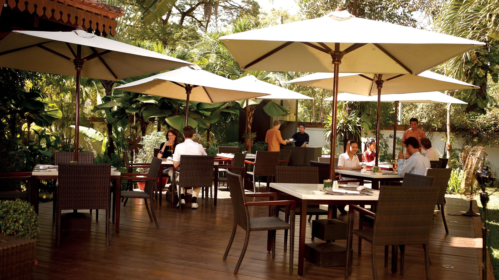 Guests can dine on international dishes and Khmer cuisine in Circle or enjoy a relaxed barbeque with a poolside setting in the Ember restaurant.