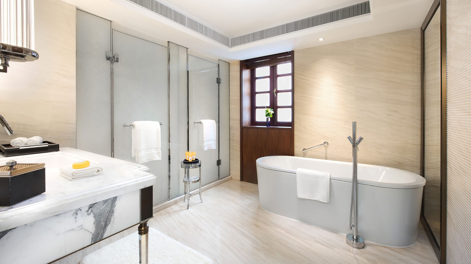 The interior of each one, two or three-bedroom villa is reflective of the city’s former French influence, and further enhanced with marble bathrooms, modern comforts and traditional Chinese touches. Positioned across several levels, the accommodation, some of which features living rooms and rooftop terraces, still retains its original red-wood framed windows that open up to reveal charming garden courtyards.