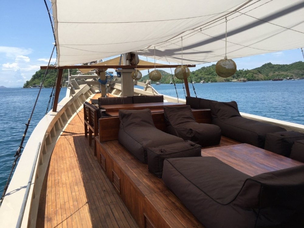 On board are seven air-conditioned double cabins spread over three decks, all crafted from fine Indonesian teak, with generous living space and ample natural light. Each room also has a private bathroom and shower.
