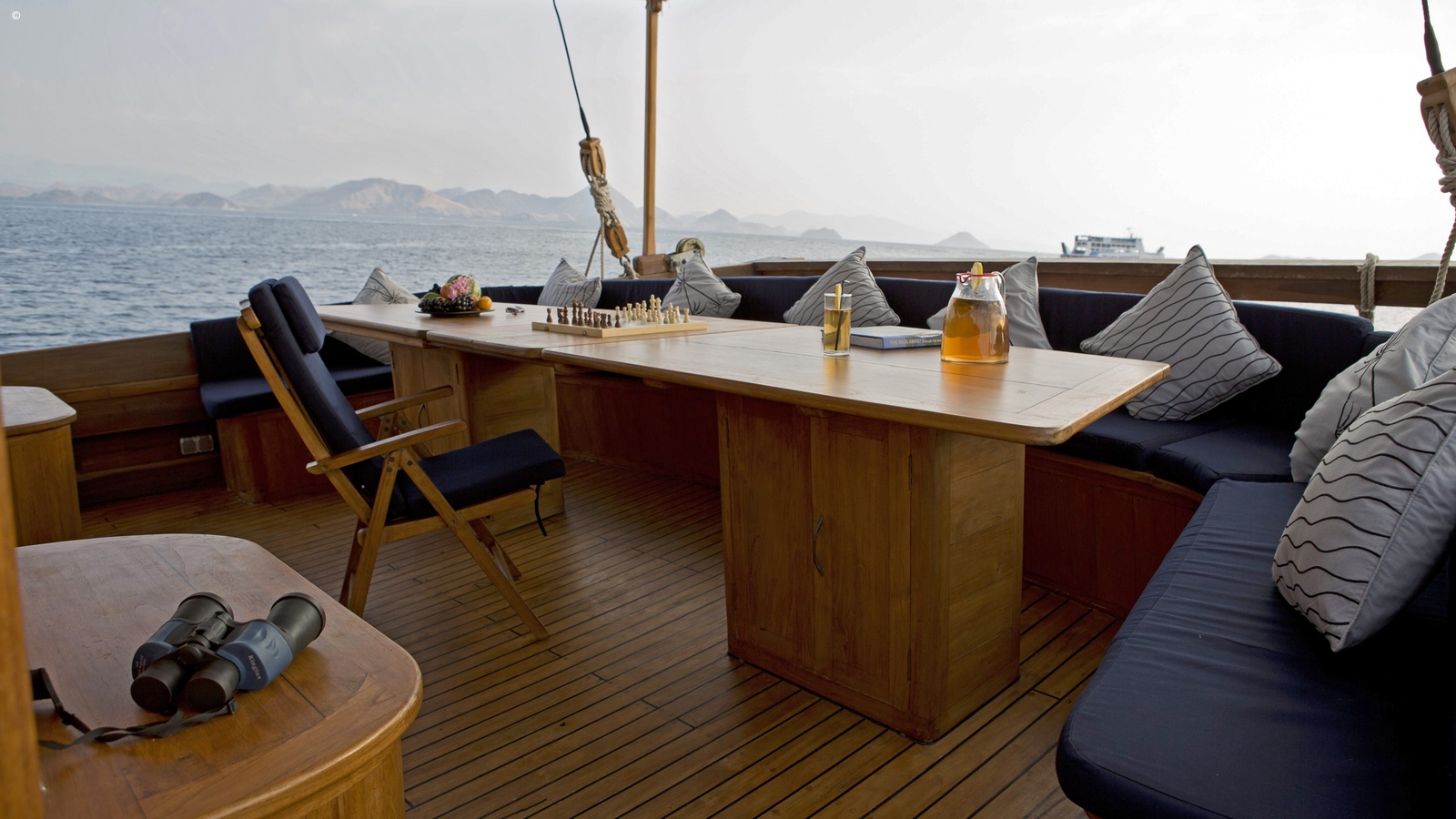 The spacious sun deck’s daybeds and sun loungers are ideal for taking in some of the astounding views across the Indonesian archipelago with a cocktail in hand. For those in search of more active pursuits, guests can dive and snorkel among the thousands of coral reefs or head to shore to take in the local environment and cultures, with highlights including spotting Komodo dragons in Komodo National Park, visiting local villages in Alor, picnicking on deserted islands in the remote Maluku archipelago or exploring the pristine reefs and mangroves in Raja Ampat.
