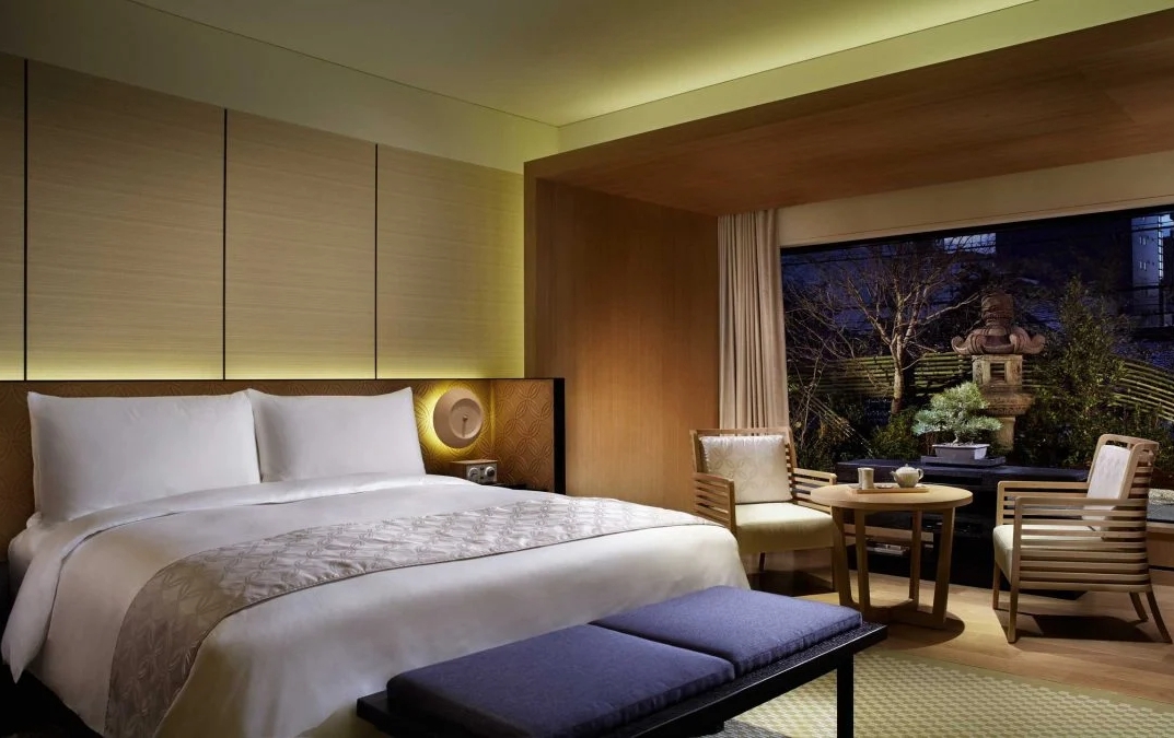 With 134 guest rooms, the Ritz-Carlton is Kyoto’s first urban luxury resort. Sitting on the banks Kamogawa river, the hotel boasts astounding views of the famous Higashiyama mountains.