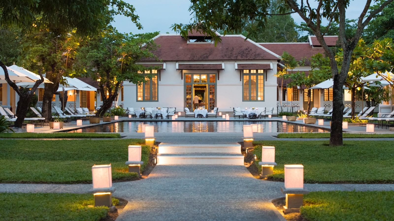 The atmosphere is one of understated elegance and grace, never better demonstrated by its peaceful gardens, tranquil pool area in a spacious courtyard, and a fragrant frangipani grove. The Dining Room offers French and Laos influence cuisine and offers a fine dining and a relaxed ambience.