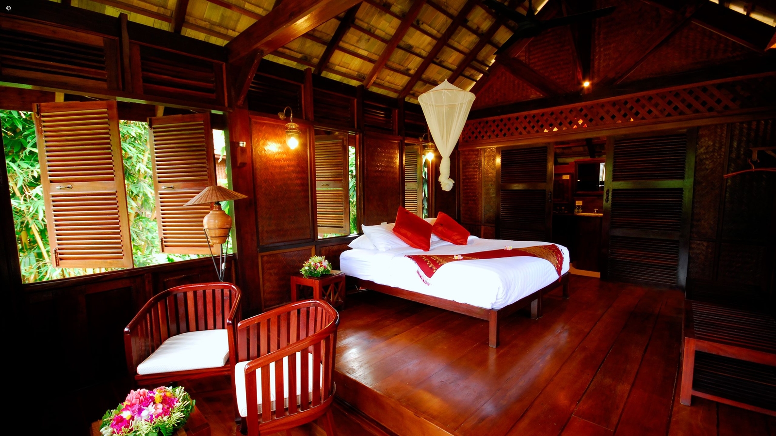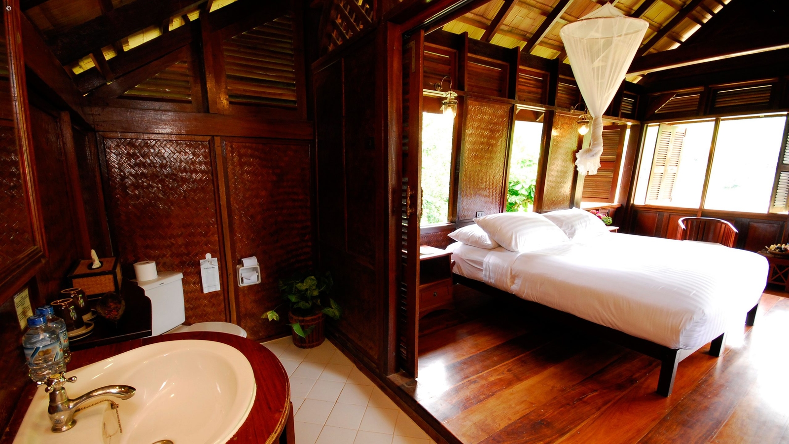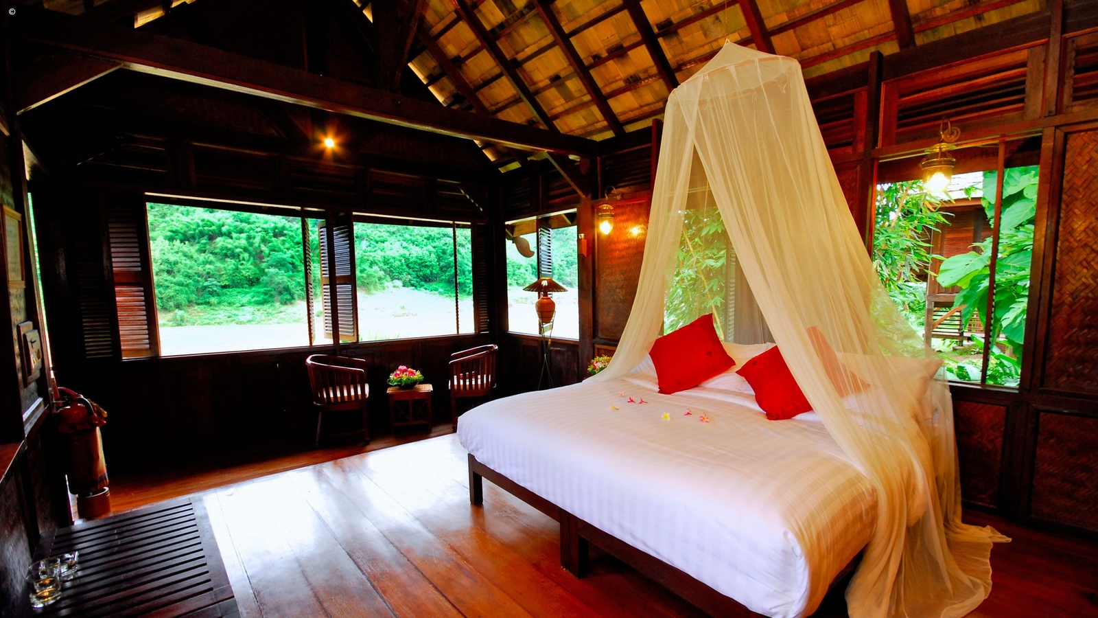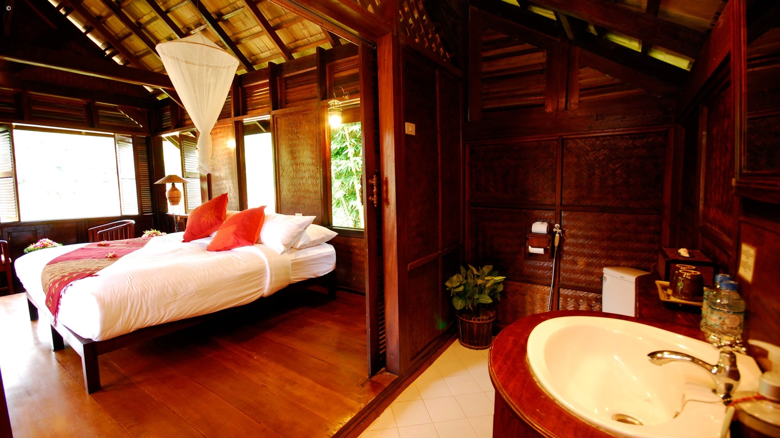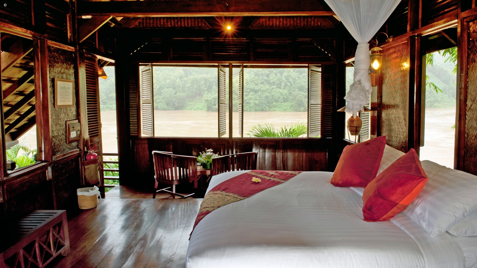After a full day cruising the Mekong, it feels good to put your feet on terra firma and even more so when staying in the delightful Luang Say Lodge overlooking the river and set against a wild jungle backdrop. Its seventeen teak and rosewood pavilions are typically Laotian in build and elevated for better views. Each one comes with a Western en suite bathroom, comfortable beds with mosquito nets and fans.