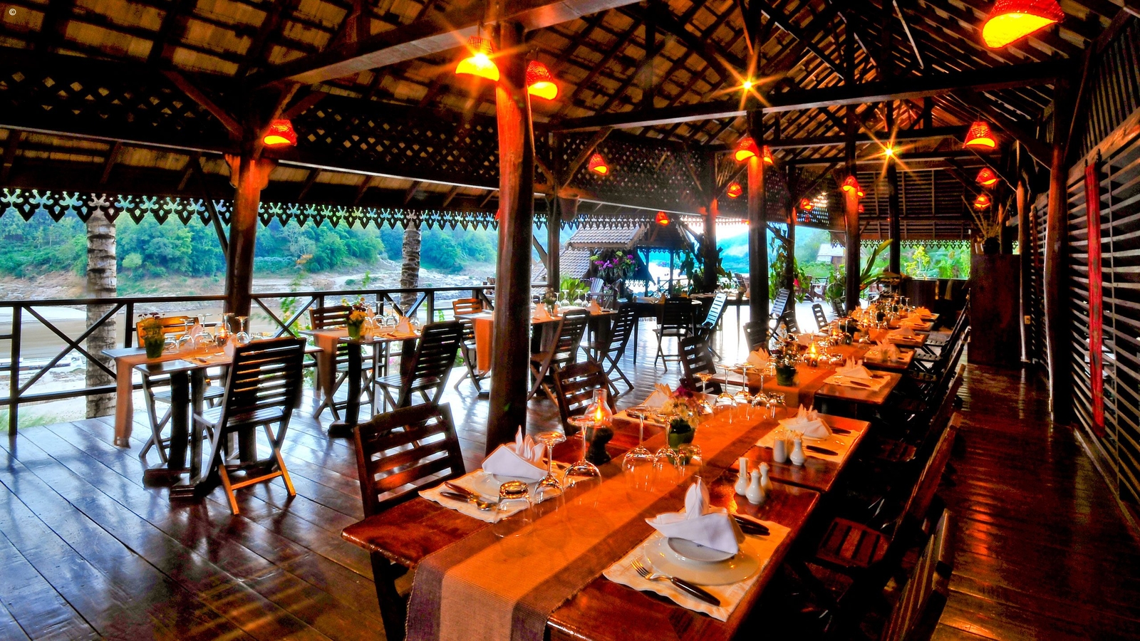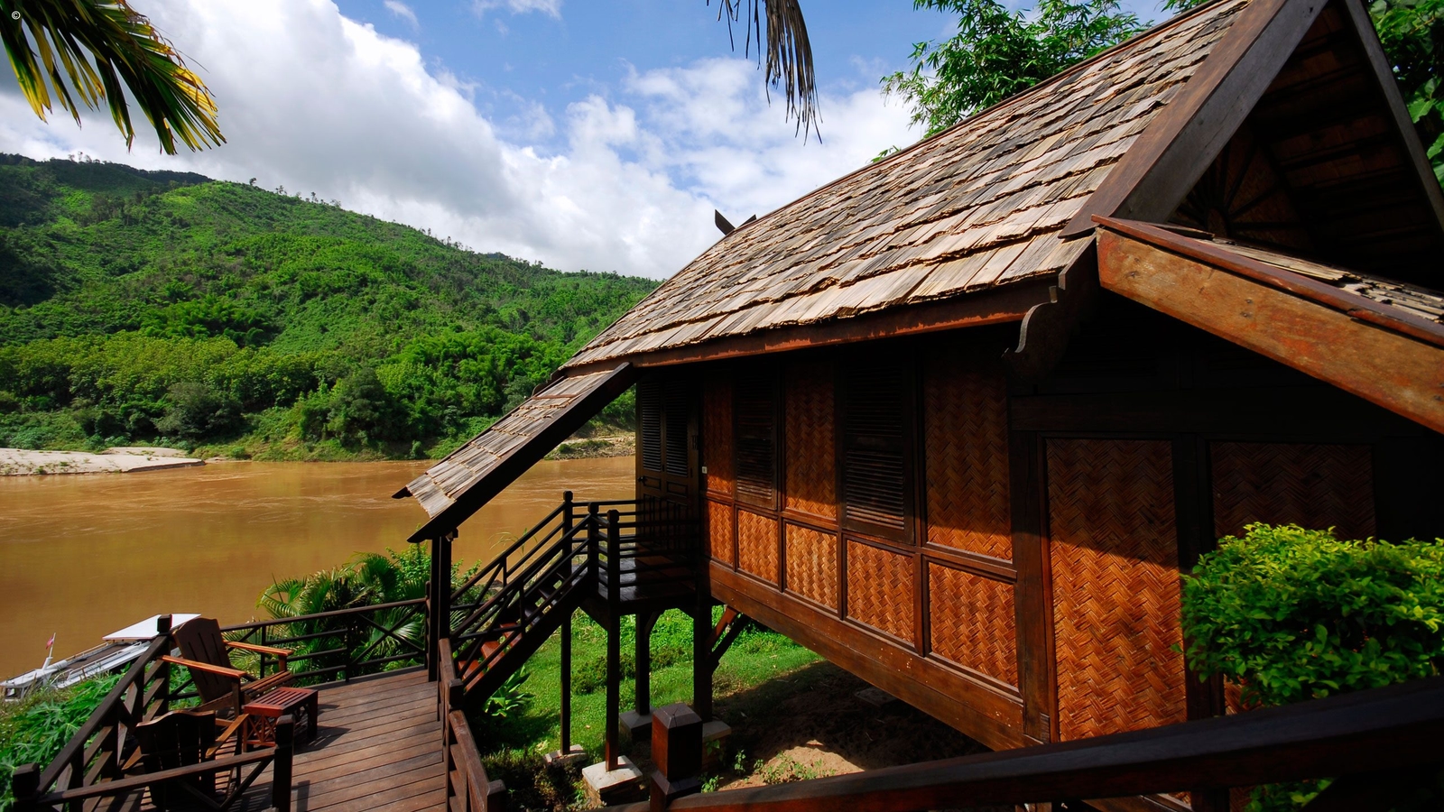 Comfortable and Natural Laotian-Style Riverside Pavilions