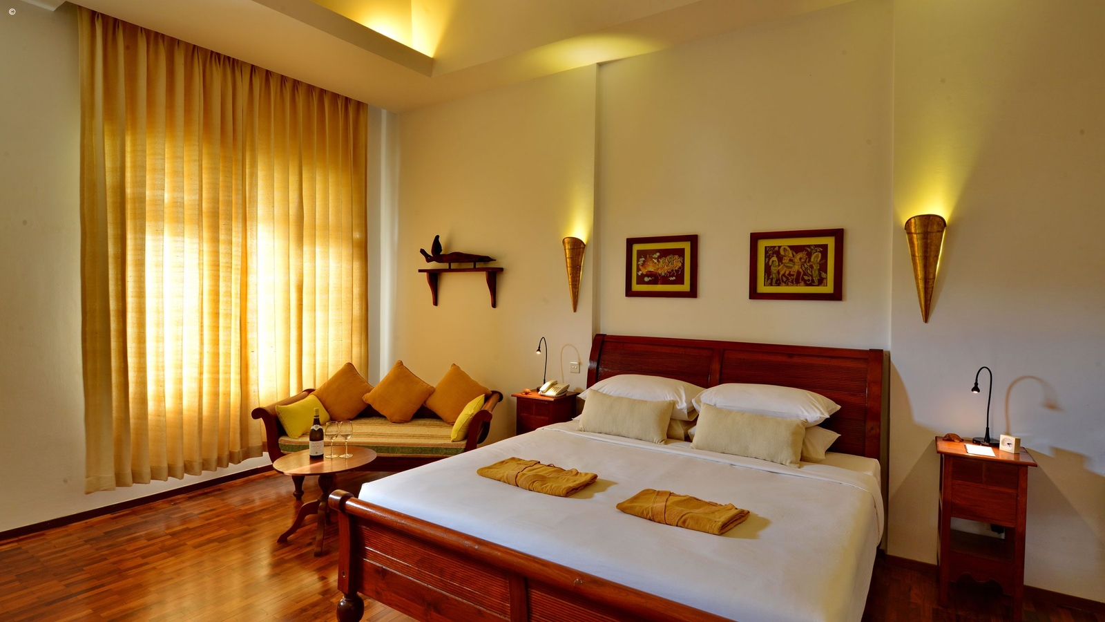 The guestrooms here are styled with traditional touches, local art and bronze furnishings, offering ample space and contemporary amenities.