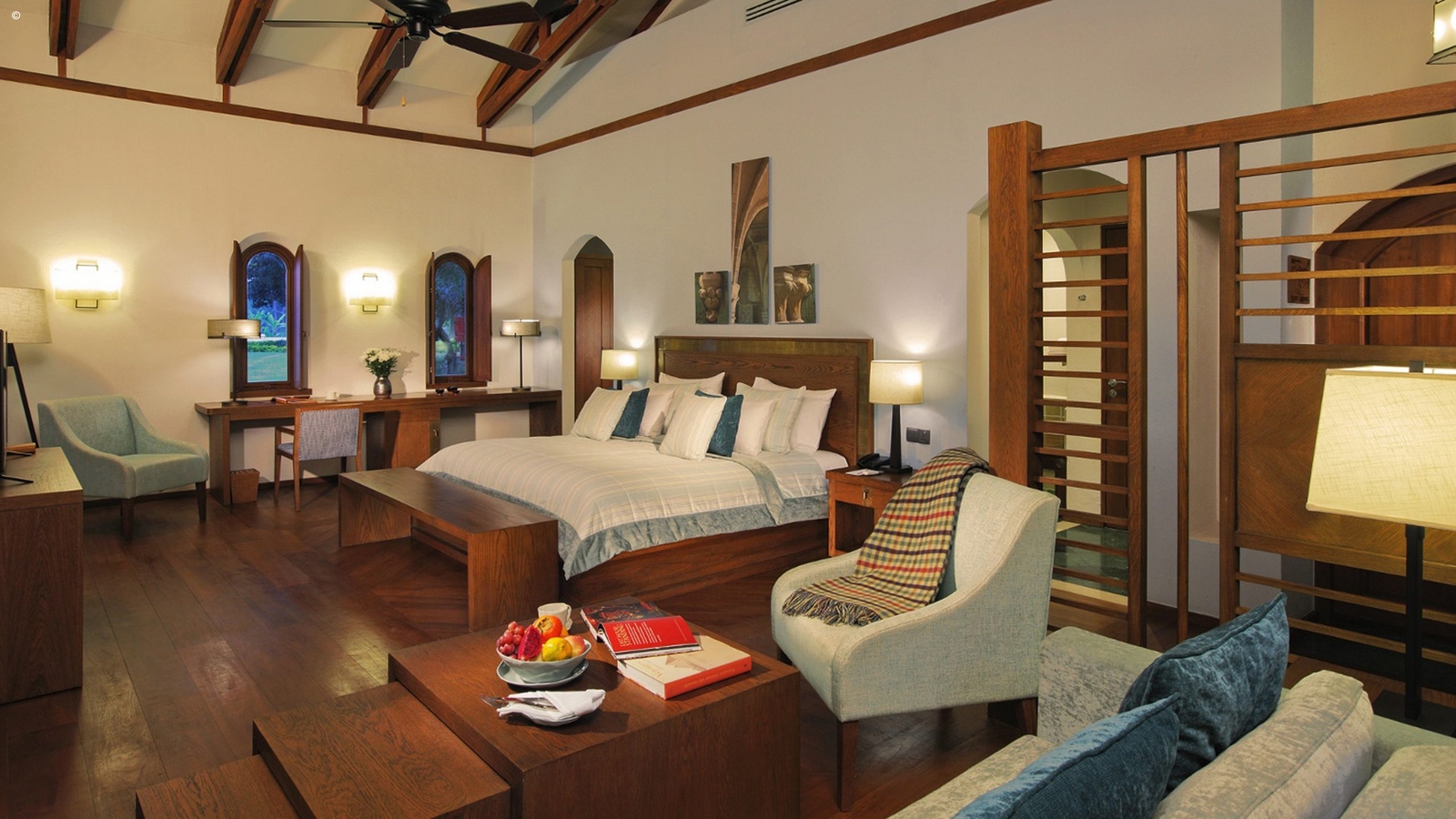 96 bedrooms range from stand-alone villas located in the resort grounds to rooms within the main building. All are beautifully designed featuring natural wood floors, high ceilings and spacious bathrooms.