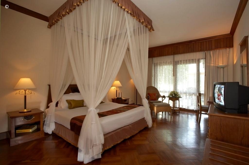 Traditionally styled, using teak wood and local materials, Kandawgyi Palace has large rooms and suites with Burmese antiques and regional artwork adorning the walls; for the best views, we recommend those rooms that overlook the lake. Although the decor references the historic roots of the city, the amenities are up to date, with flat-screen TVs and air-conditioning.