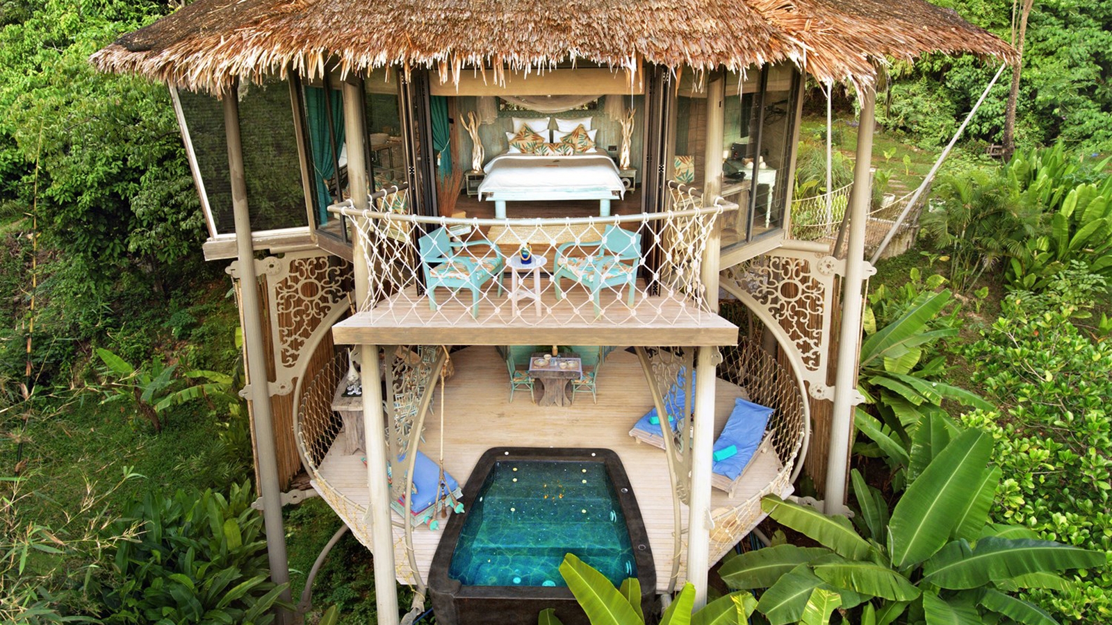 Rediscover your inner child in a luxurious treehouse villa overlooking the lush jungle and a secluded beach. This luxury resort, set in the jungle canopy, makes the most of its beautiful natural surroundings and offers views to the sea and Phang Nga Bay.
