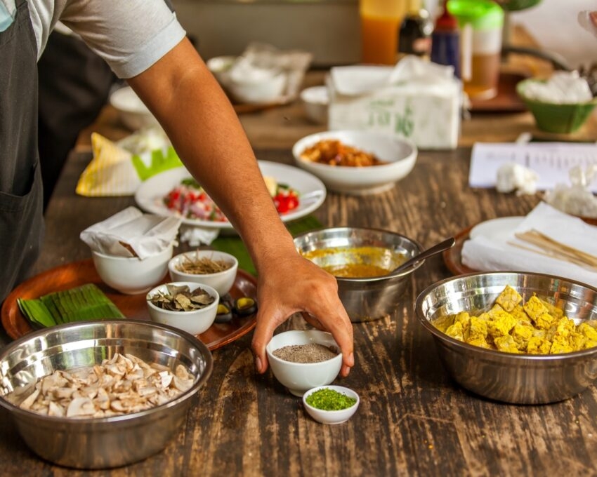 Following breakfast you will spend four entertaining hours in a wide open Balinese kitchen, learning how to create authentic, tasty local dishes. The morning culminates in a celebratory lunch during which you’ll taste the dishes you have helped to prepare.