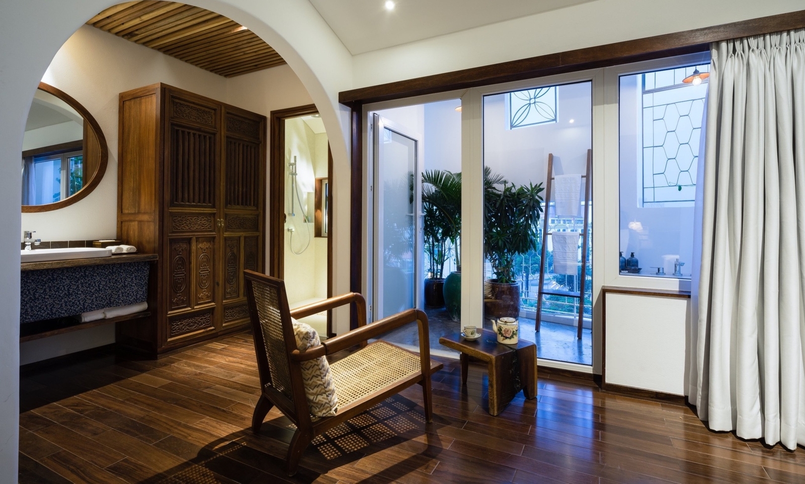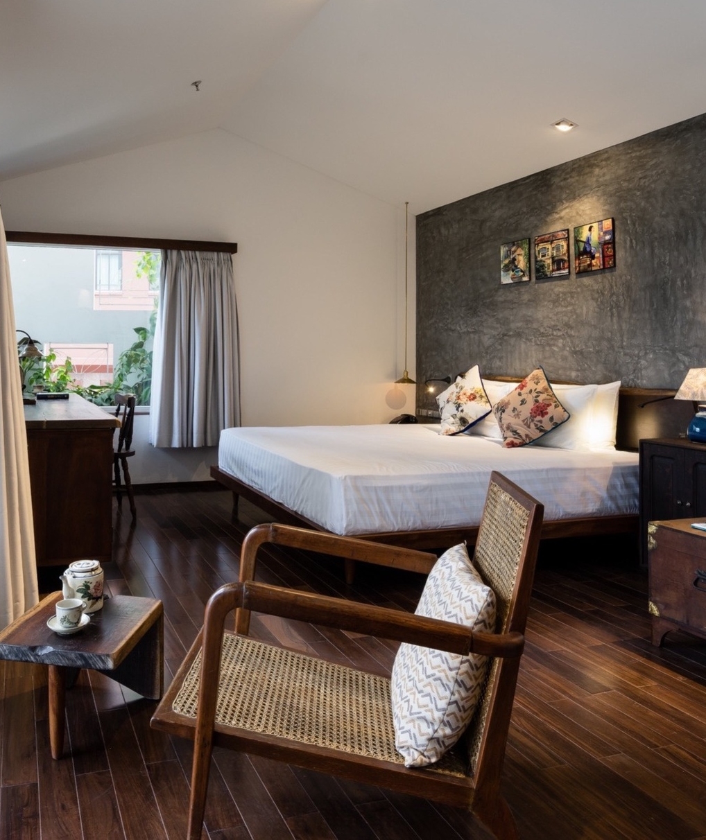 With smooth wooden floors underfoot and antiques and objects d’art that give a sense of place, each room at The Myst Dong Khoi transports you to the Saigon of old. The spacious open-plan rooms offer Vietnamese character – mythological paintings, teak carvings, ceramic drums and wrought iron rails – reflecting the charm of neighbourhood shop houses.