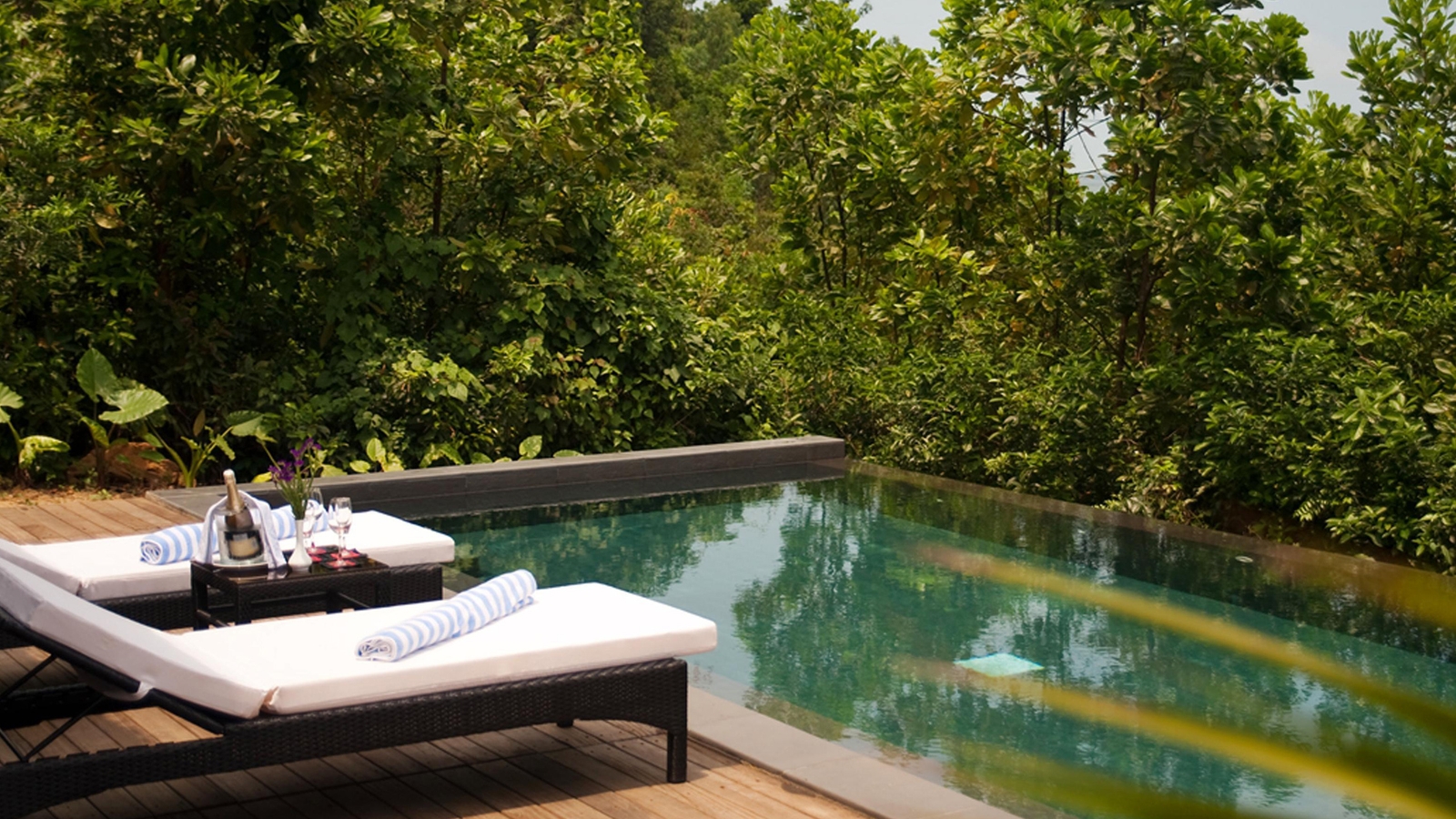 The resort features 29 luxury villas and bungalows, each individually designed and with their own private sundeck and balcony that leads either out onto the lagoon or into a private garden. Decor is a tasteful mix of contemporary design and traditional Vietnamese features with lots of natural materials and local textiles used throughout.