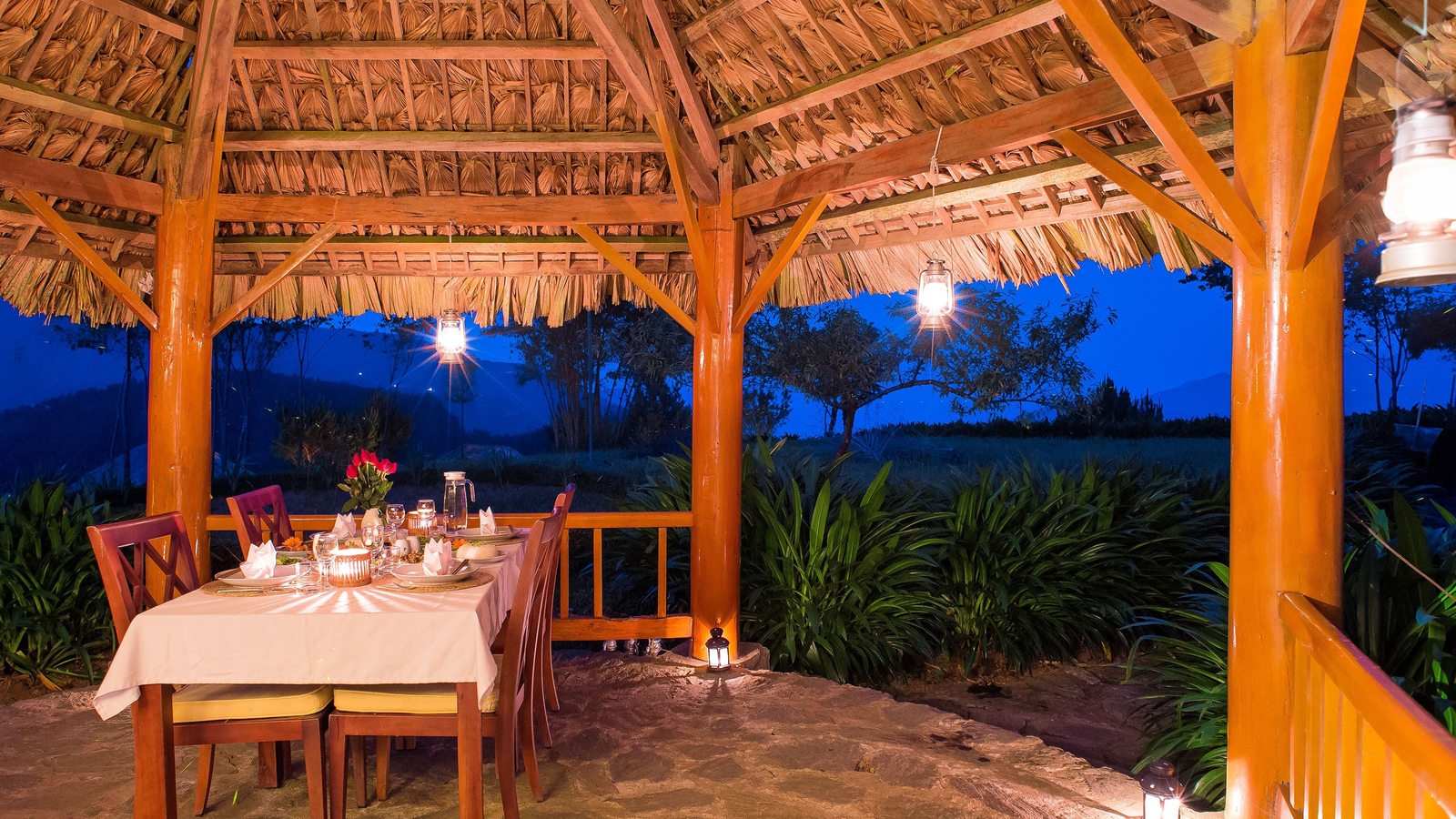 Stay in one of the 25 charming and rustic bungalows assembled from local white granite and tastefully decorated with simple yet pleasant interior and wooden furnishings. Based on sustainable principles, the lodge is environmentally sympathetic to its remarkable surroundings through solar-powered systems. Indulge in traditional Vietnamese dishes within the restaurant situated in the main lodge building.