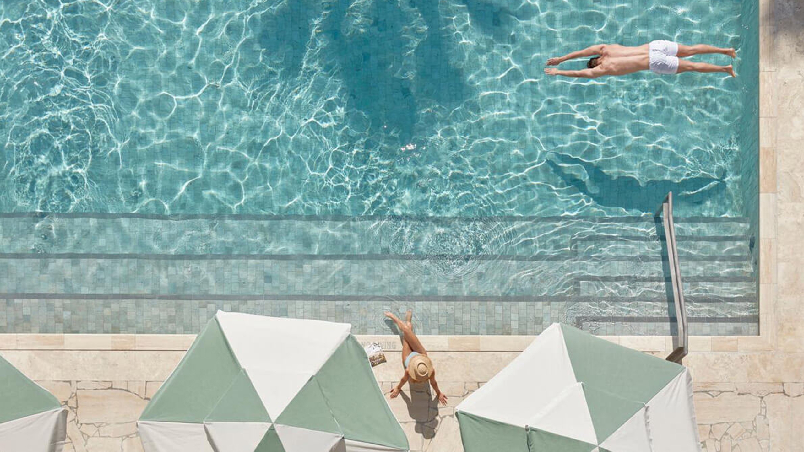 There are 175 rooms, with views of the city or the pool, and some encompass private balconies and separate living areas. Décor pays homage to 1950s Miami, and airy spaces are enhanced with partially cork-panelled walls, marble flooring, and oak features. Deep, circle-shaped baths, with brass taps, sit in the middle of the rooms, or by the windows, offering dreamy vistas over the treetops.
