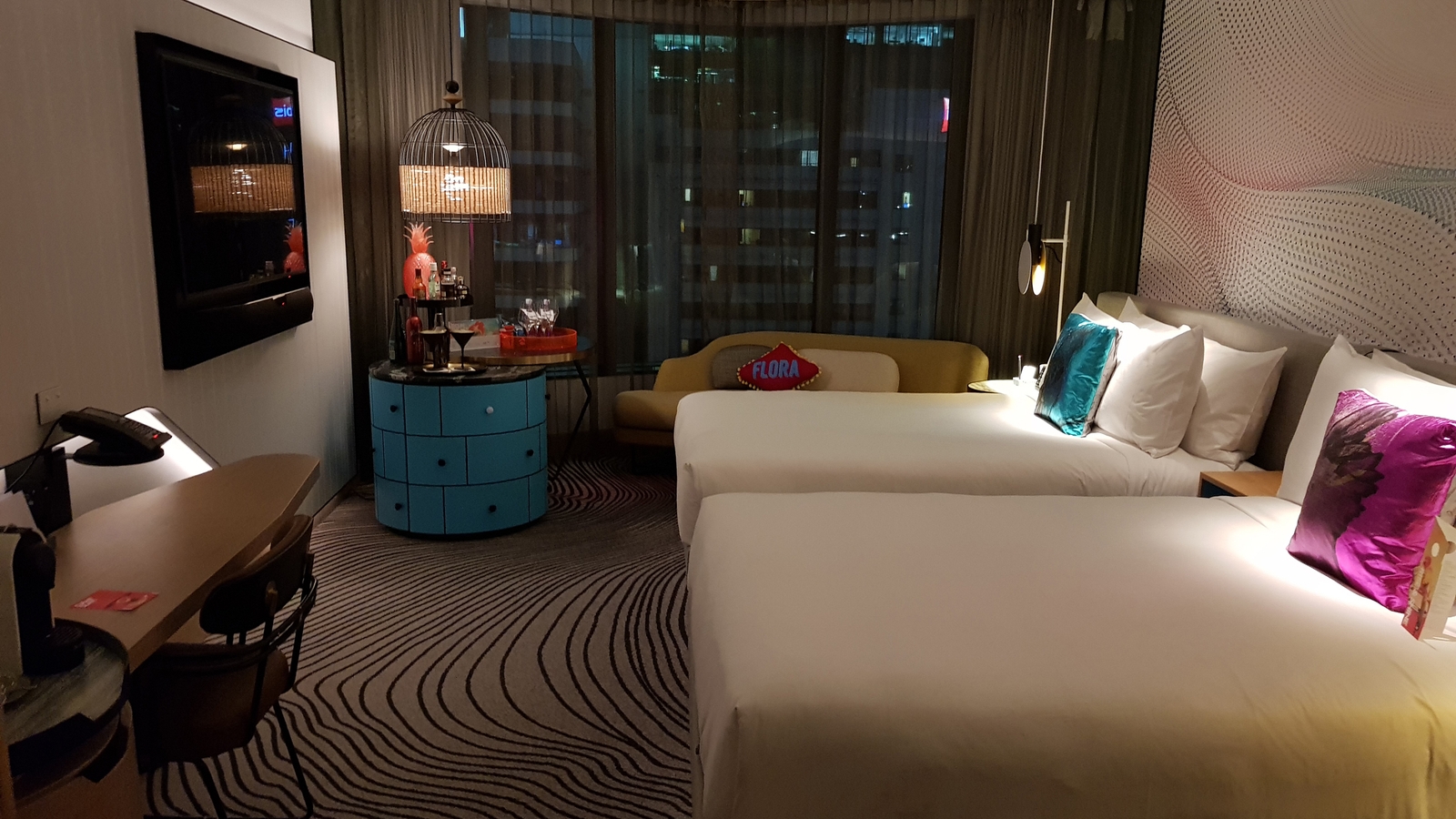 The hotel, as with all W hotels, is undeniably cool. Bold colours and quirky touches characterise the public spaces and rooms, of which there are 312, which range from the Wonderful, Spectacular and Marvellous rooms through to the WOW and Extreme WOW suites. All offer views of the river.