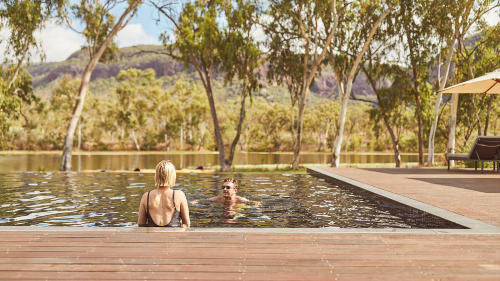 The main lodge is where dining takes place, and chefs make use of local produce to create innovative dishes that can be enjoyed outside. In-room dining is also available, and if you plan on heading off on a midday adventure, a gourmet picnic hamper can be made up. Some of the activities and excursions on offer are tours of the mine and the township, cattle mustering at the nearby station and paddle boarding or kayaking on the river. Guests with little inclination to venture into the dusty outback can grab a spot by the infinity pool, with a glass of award-winning Australian wine in hand.