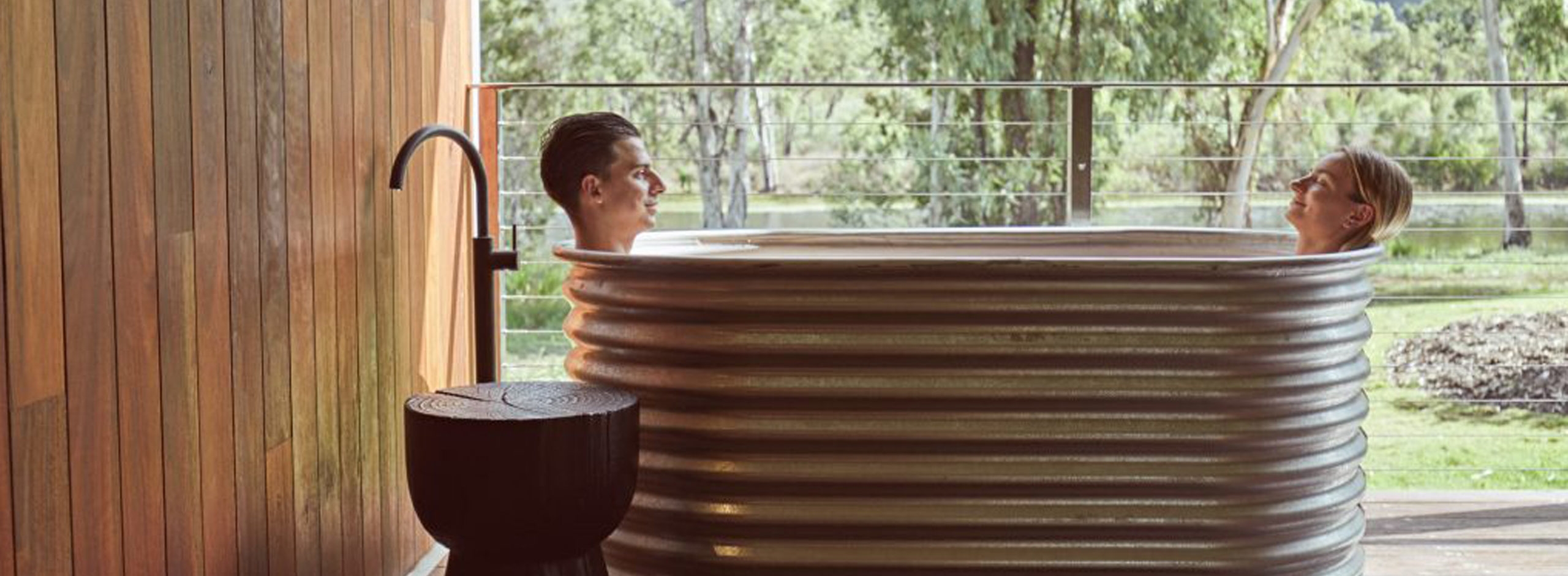 The lodge sits in the shadows of the imposing Mount Mulligan, bounded by a dramatic landscape and enclosed with eucalyptus woodlands. Eight guest rooms, including three suites, can house up to 16 guests, and come with assigned private electric buggies for easy access around the property. Interiors are filled with natural furnishings, such as spotted gum timber cladding, while earthy colour schemes create soothing spaces. Timber-framed glass doors open up onto private decks, deep outdoor baths and utterly spectacular vistas.