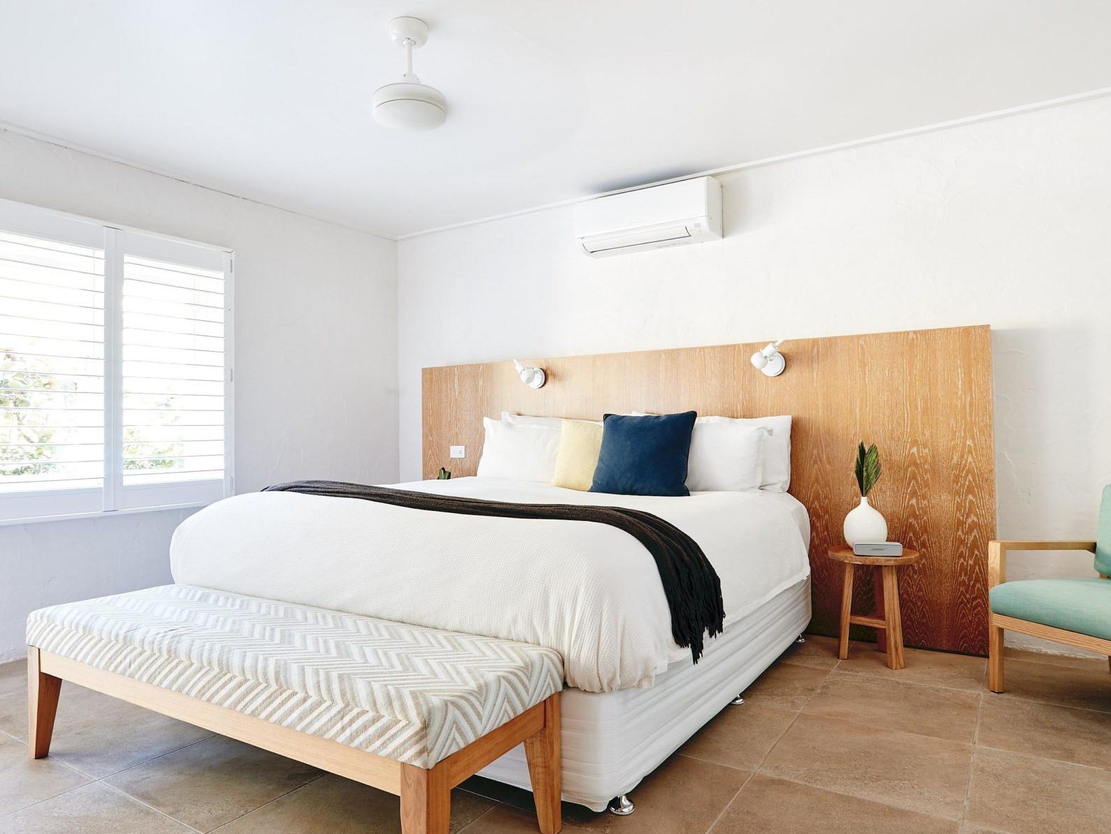 In the rooms, natural colours, blond timber and large windows create bright and laid-back spaces, complemented by the extraordinary setting outside. They are the ideal place to which to retire and gaze upon gorgeous beachfront views after a day spent exploring. For families or groups of friends, the four-bedroom beachfront villa is perfect.