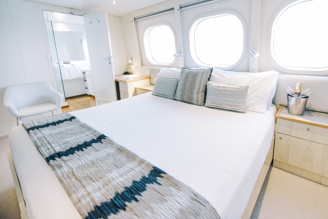 The vessel can accommodate 36 guests in its 18 comfortable cabins, enjoying large and contemporary-style living areas. Modern furnishings are often complemented with picture windows and en suite bathrooms.