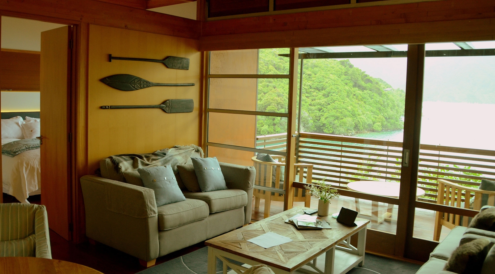 The Bay of Many Coves is reached by boat, cruising across a sheltered bay until you reach the resort perched on the water’s edge. Nestled within the native bush that surrounds, are a selection of one, two or three-bedroom apartments, each with their own balcony that looks out over the bay. The Kereru Suite has its own private entry and features two en-suite bedrooms, making it a perfect option for families.