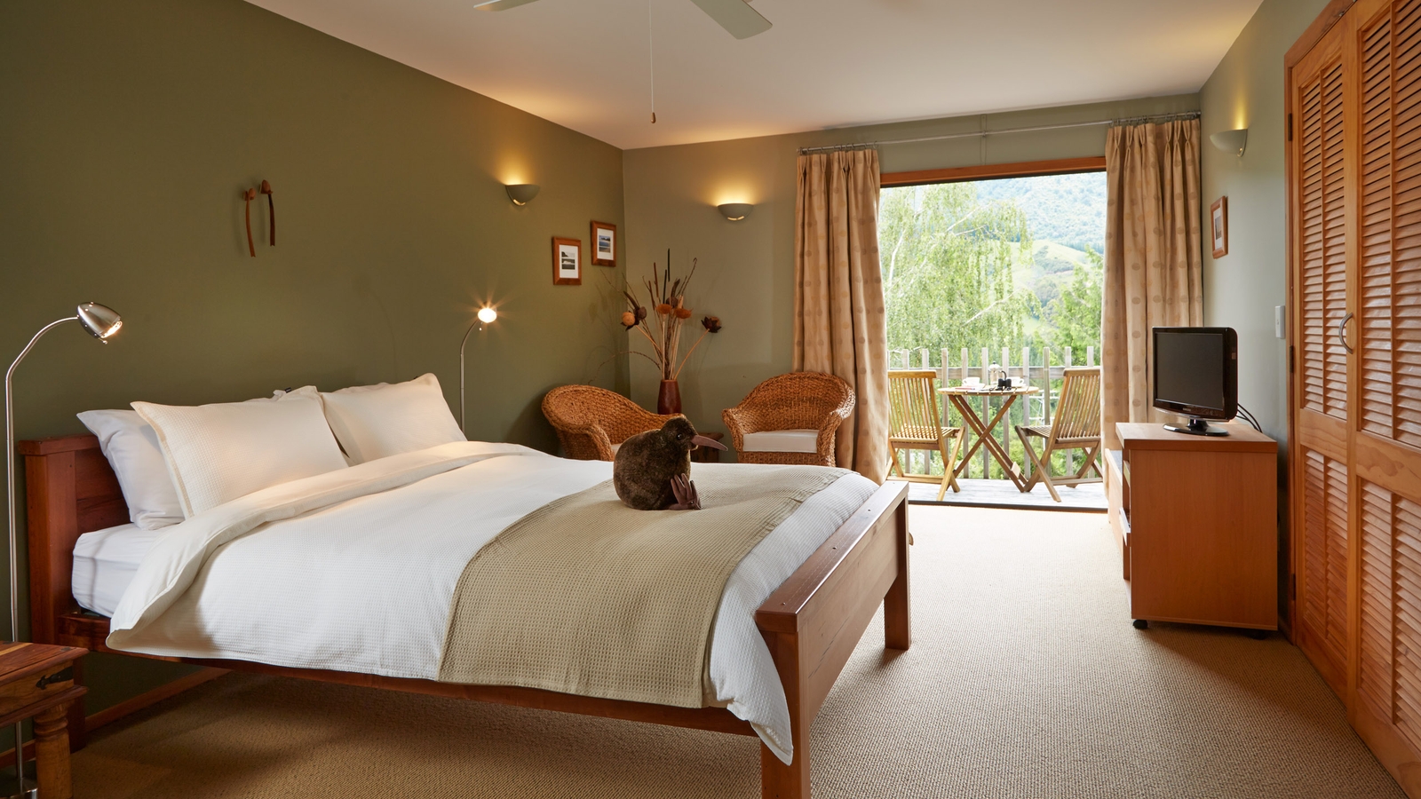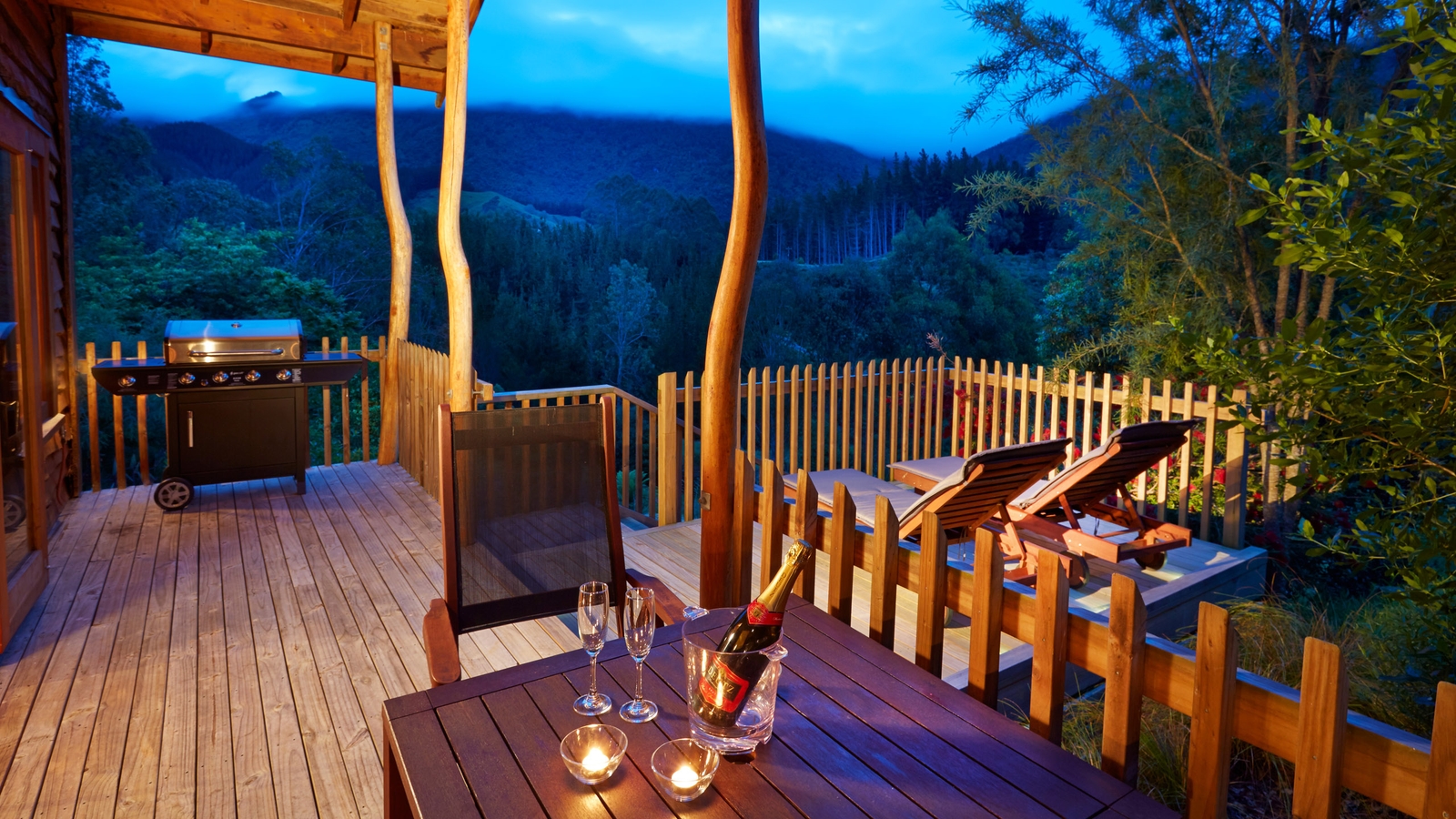 Meals here are a real highlight with delicious, local produce from the garden and local area, prepared in the comfort of your chalet. Alternatively, you can enjoy a BBQ on your own deck with a glass of New Zealand wine as the sun goes down.