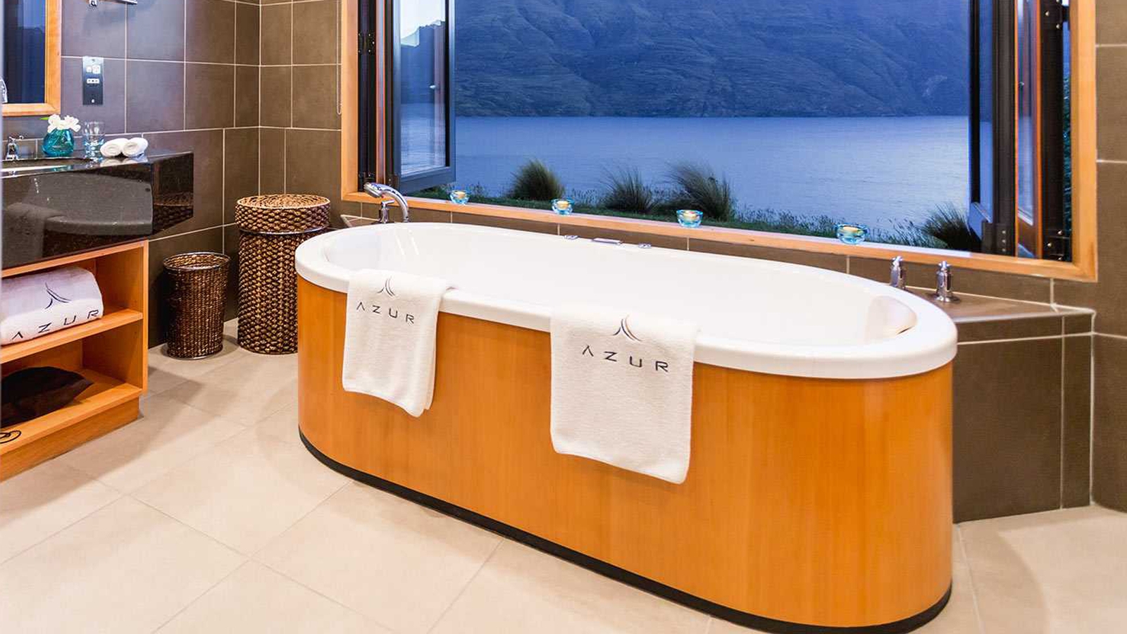 Azur Lodge consists of nine private villas set on a hilltop overlooking the surrounding mountain ranges and Lake Wakatipu.