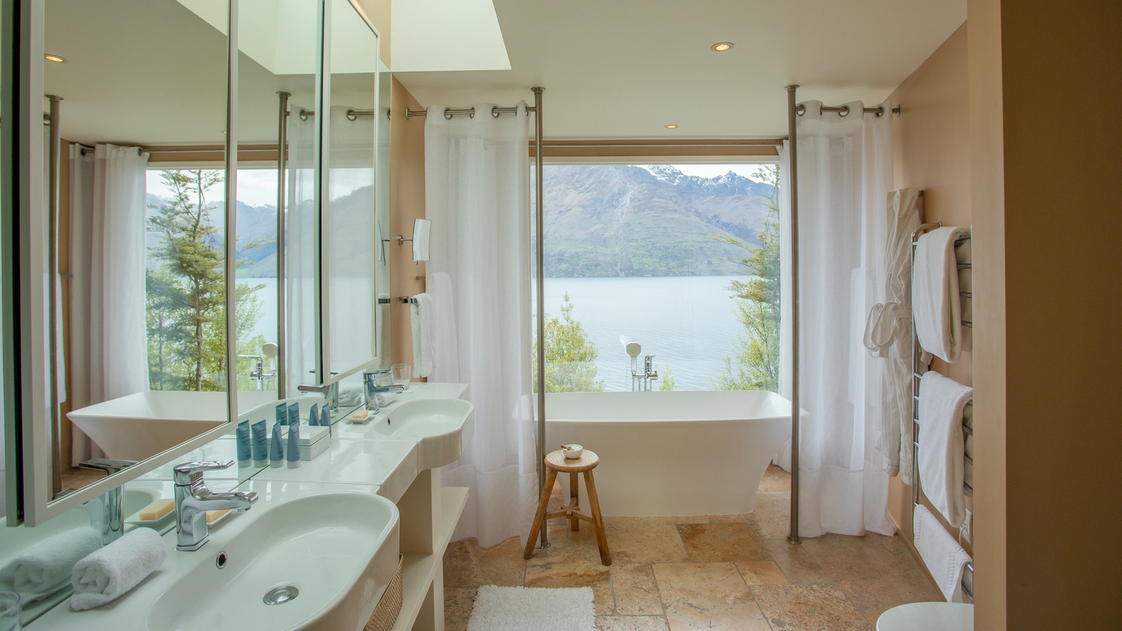 Sat on the shores of the deep Lake Wakatipu, Matakauri Lodge is a tranquil haven of serene blue waters and sweeping mountain landscapes. Snow-capped peaks reach towards the sky, providing a backdrop like no other to this incredible luxury establishment.