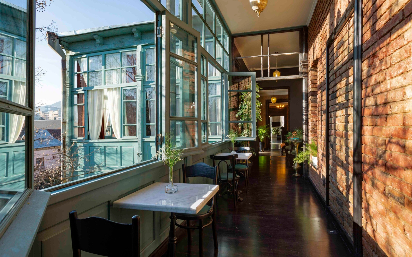 A grand 19th-century building painstakingly restored over two years, Unfound Door is integral to the cultural heritage of Old Tbilisi. The stunning entrance hall sets the tone of this boutique hotel, with its grand roof lantern bathing its historic frescoes and marble floor in natural light. As you move through the space, it’s all polished marble, stripped-back herringbone floors and exposed brick walls. Light and shadow play a huge part in the relaxed aesthetic of the hotel’s numerous chilled out spaces (one of which doubles up as the breakfast room). The busy D.Agmashenebeli Avenue, well known for handsome 19th-century architecture and numerous places to eat and drink, could be a million miles away.