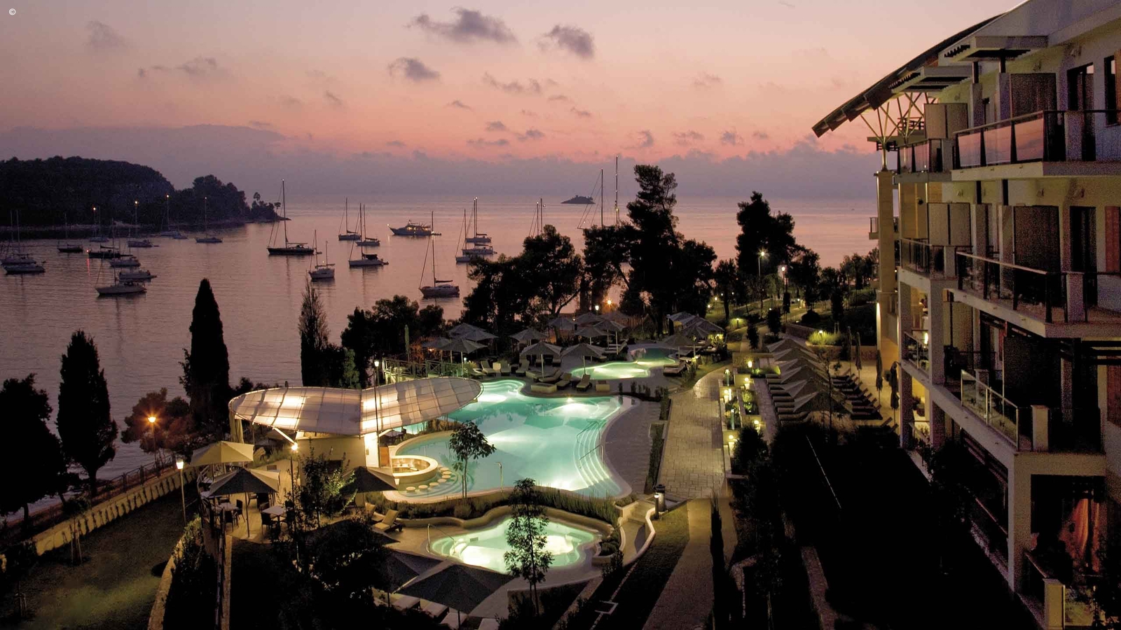 The five-star Monte Mulini occupies a covetable position just a 10-minute walk away from Rovinj’s town centre. Part of the exclusive Maistra Hotel Collection, guest at this boutique hotel will enjoy its surrounding lush parkland and bay views.