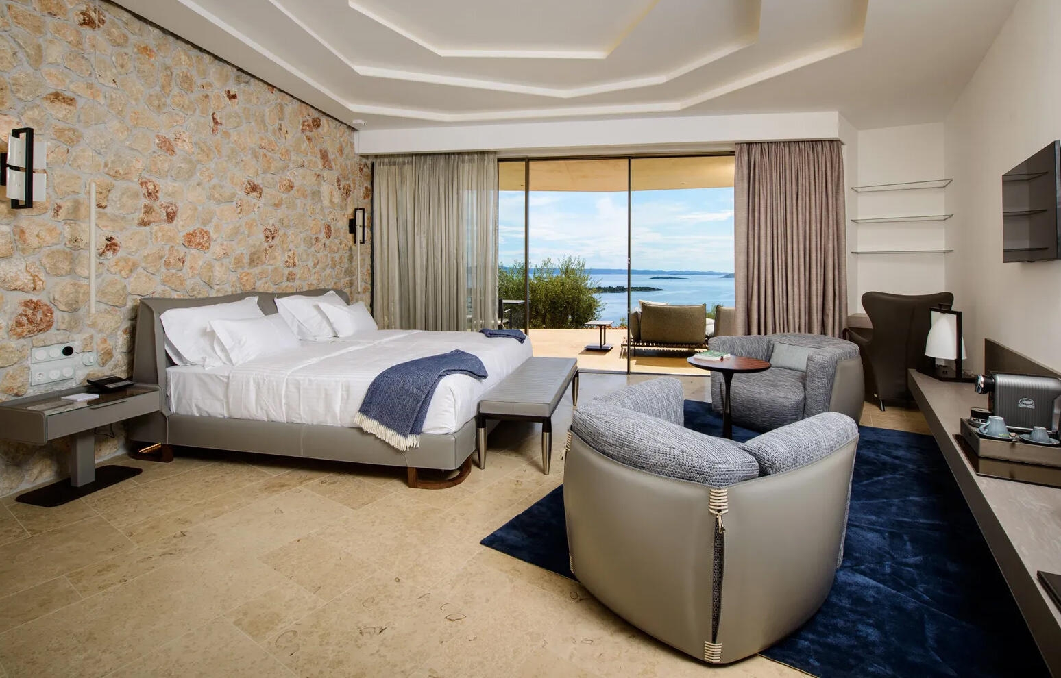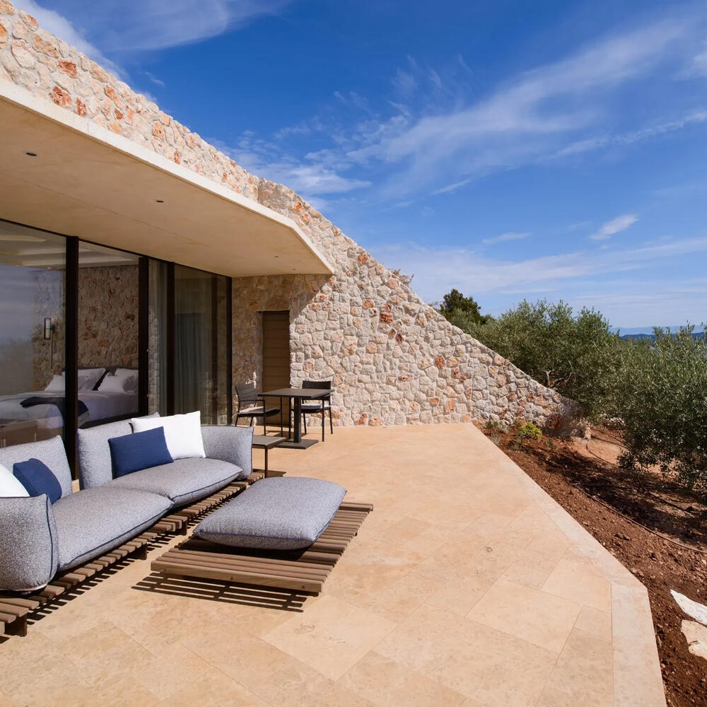 The design of the Villa Nai 3.3 fits seamlessly into the environment, contributing to the outstanding beauty of this locale. Resembling the main deck of a boat, the patios were designed as an extended arm of the interiors, providing for the perfect setting to take a rest all day long or marvel at the early morning sunrises and stargazing evenings. Indulge in the finest cuisine sourced from local farms to the depths of the Adriatic, prepared according to traditional Dugi Otok Island recipes.