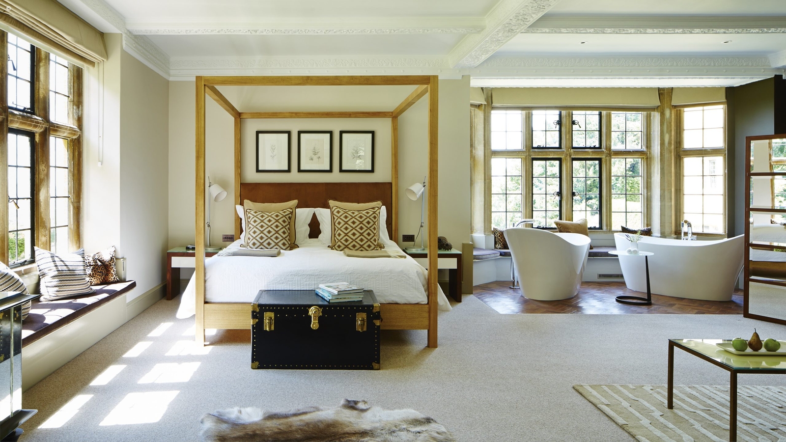 The Arts and Crafts building is home to just eight rooms and suites, each named after a native British tree. Whether you stay in Willow, Beech, Juniper or Chestnut you can expect classic British style with a contemporary twist. Sophisticated neutral colour schemes are brought to life with splashes of bright colour and printed textiles and there are cosy woollen blankets for those chillier days. Bathrooms come with freestanding rolltop baths, some with views over the Vale of Evesham and out towards the Welsh Black Mountains.