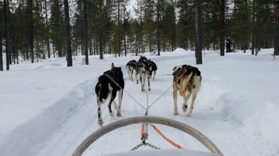 Meeting the energised four-legged friends who make dog sledding possible is so much fun! I was glad we got to take time meeting and cuddling the huskies, whilst also learning more about the farm and how the dogs are held. At this particular lodge, they were well looked after, which cleared some of my reservations towards dog-sledding. After making new furry friends, I went out on a beautiful ride through the Finnish winter forest, enjoying both sitting in the sleigh and steering it myself.