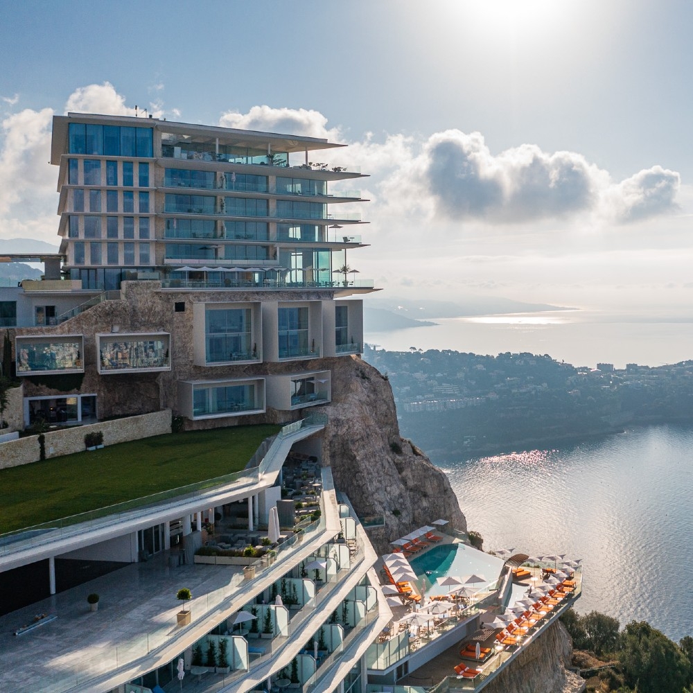The striking modernist architecture of The Maybourne Riviera emerges from the rocky peninsula of Roquebrune-Cap-Martin as if forging its way into the glistening Mediterranean Sea. The hotel is perfectly positioned between Menton and Monaco, with views across warm terracotta rooftops, olive groves and citrus trees, out to the azure horizon.Step inside and you’ll find unique spaces created by celebrated designers and architects, inspired by the movement of the sea, the verdant landscape and the spectacular views. There are 69 rooms at the Maybourne, including 29 suites, across 14 different categories. The furniture, decor and design of all the rooms showcases the impeccable modernist style. Step out onto your private terrace as the sun slowly sets over the sparkling Mediterranean Sea. When it comes to dining, world-renowned chefs Mauro Colagreco and Jean-Georges Vongerichten have been inspired by the rhythms of the land and sea. There are several dining options, including fine dining through to relaxed, chic poolside snacks and light meals. Two hotel bars are devoted to capturing the essence of the perfect sundowner atmosphere with beautiful blends of cocktails, fine wines and champagne.