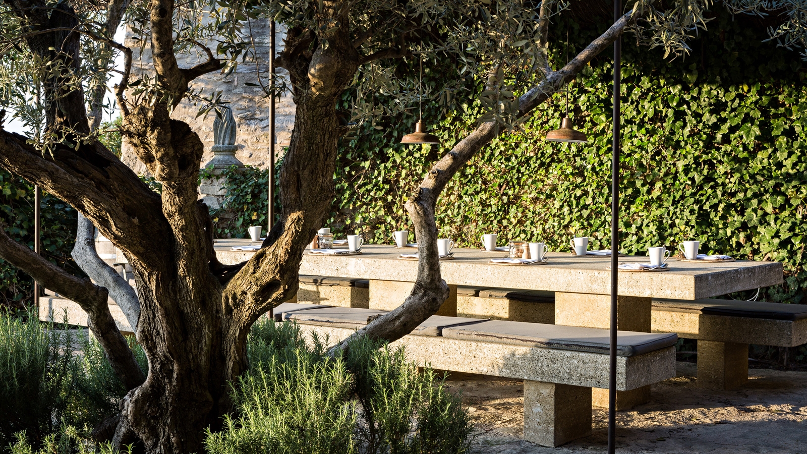 Enjoy dinner in the magnificent stone vaulted dining room or out on the terraces at Restaurant Jérôme Blanchet, with views over the vineyards and olive groves. Or enjoy the rustic celebration of food and wine produced within 40km of Crillon le Brave at Bistrot 40K. Fresh local produce is delivered to the kitchen daily. For a leisurely breakfast or lunch, take a table at Grange Bar or Terrace Ventoux and enjoy the view of the Provençal landscape.