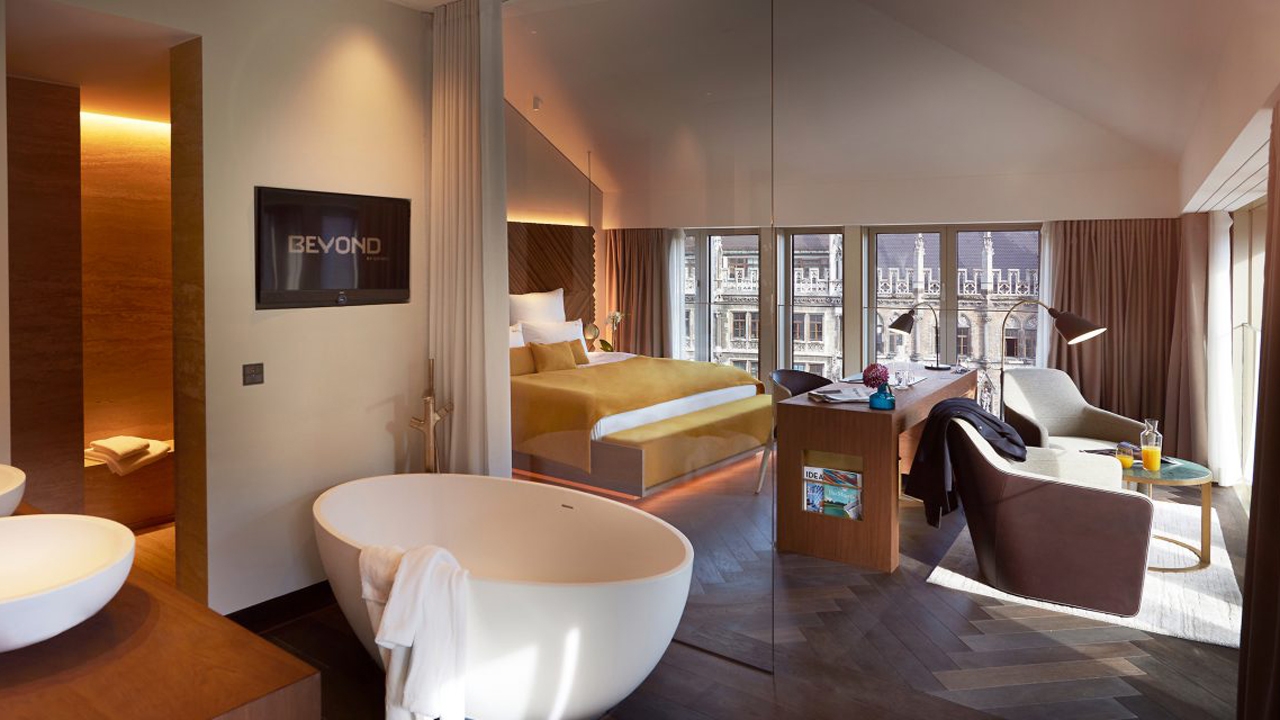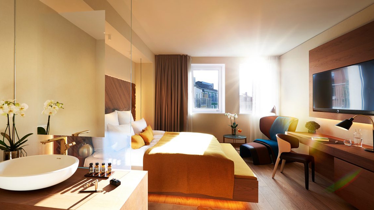 Each of the hotel’s 19 individually decorated rooms have been designed as places of comfortable retreat in the middle of Munich’s vibrant city centre. Not only are they spacious and outfitted with state-of-the-art technology, but they also boast stunning city views. here you are invited to relax in luxurious surroundings while still feeling like you’re ‘home’. The modern bathrooms all have rain showers, some also have a bathtub, selected rooms have balconies, and the roof suite has access to a large terrace.