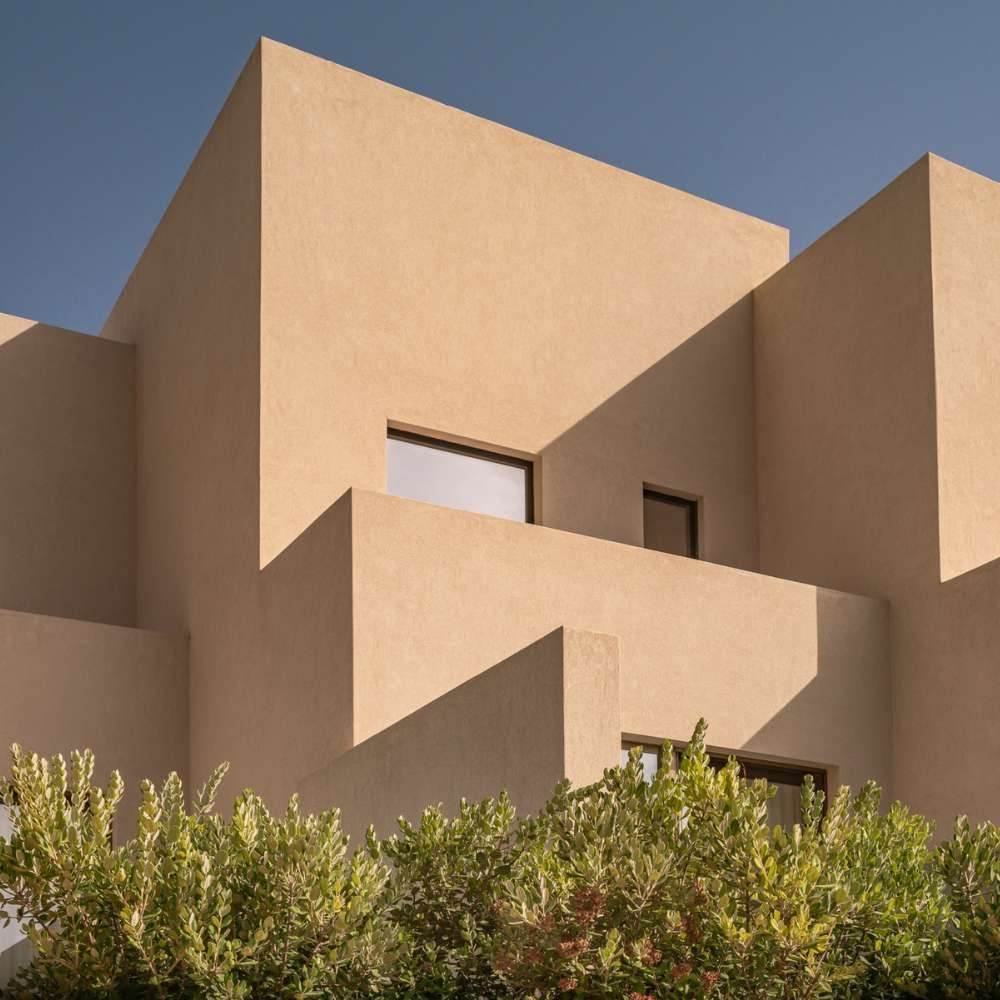 Each room and suite is curated with natural materials, handcrafted Greek artwork and a colour palette inspired by he surrounding sea, sand and olive groves. Some feature private pools, while others open onto terraces that frame uninterrupted views of the horizon.