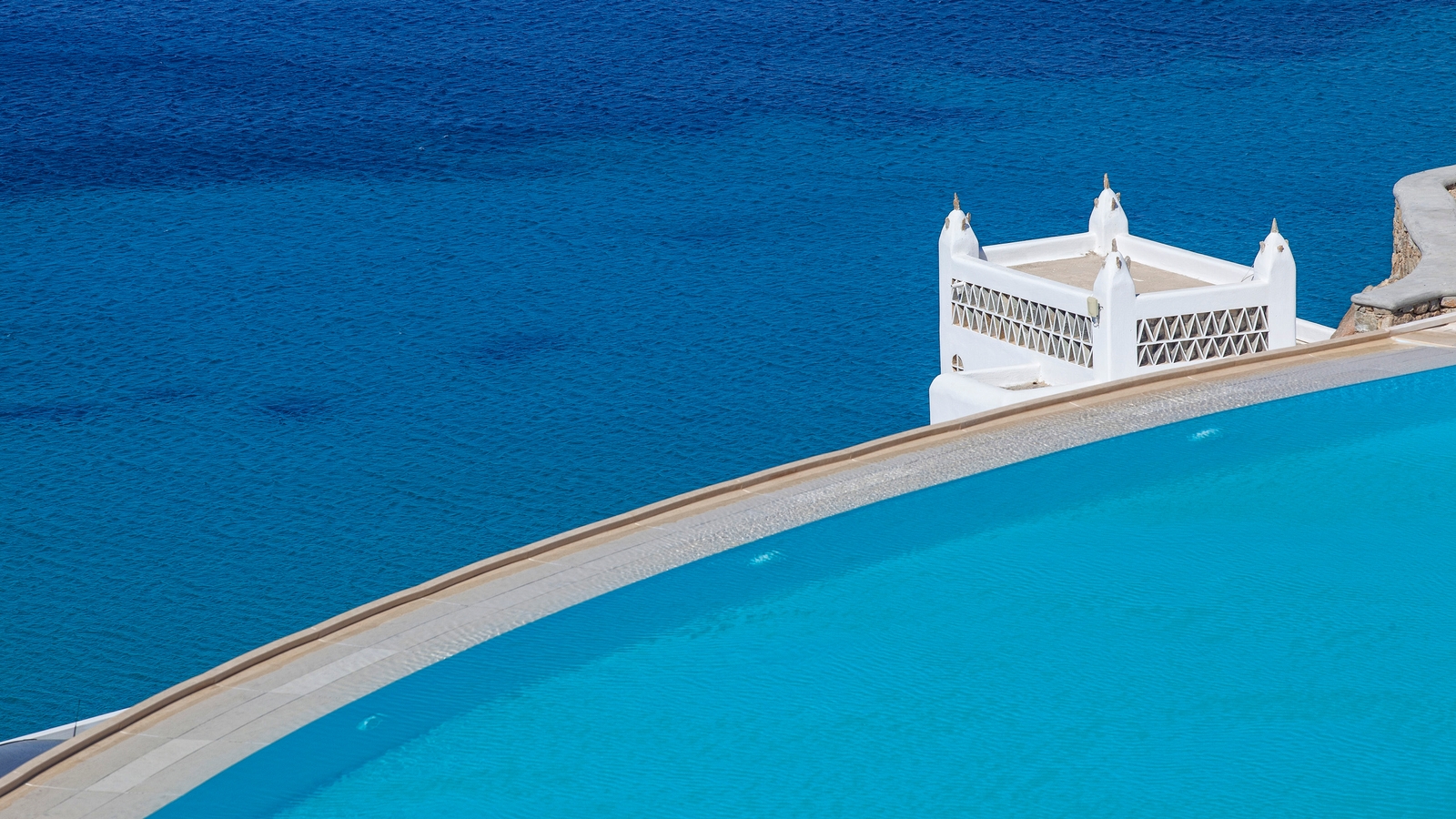 Myconian O is an oasis of unrivalled elegance that invites you to immerse yourself in its tranquil ambience and revel in the essence of Greek island living. Located within the embrace of majestic cliffs and shielded from strong winds and waves, Myconian O is an outstanding destination in Mykonos – one of the best Mediterranean islands.