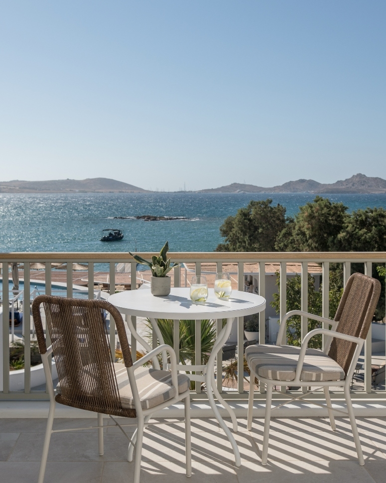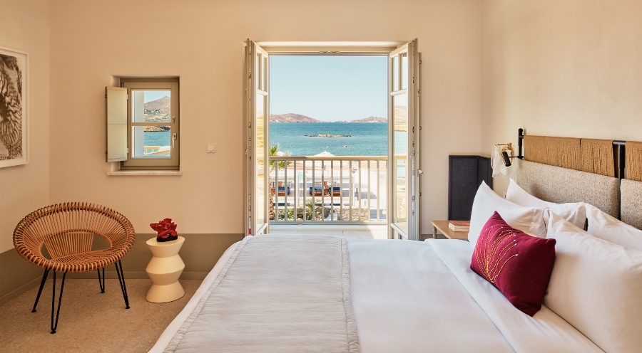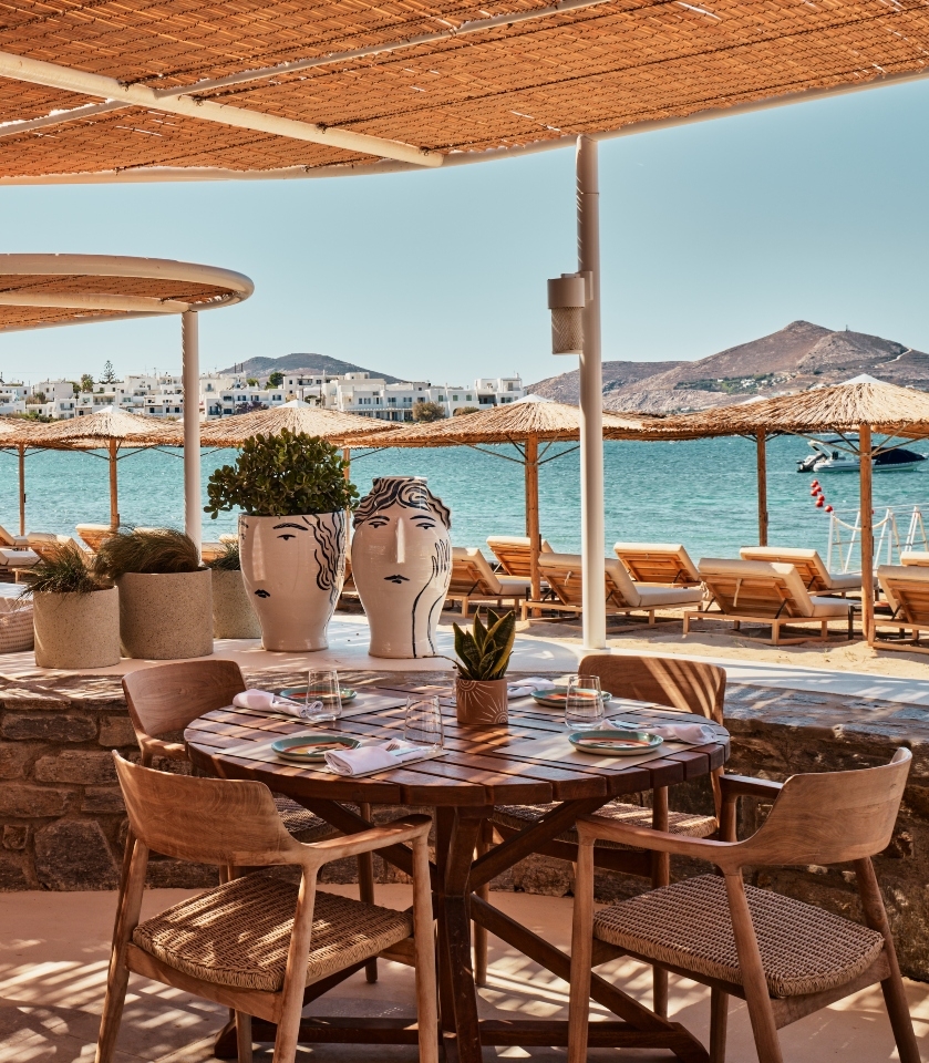 The hotel also boasts its own beach club where you’ll spend days basking in the sunshine with your feet in the sand on the hotel’s own comfortable loungers with parasols for shade. Rejuvenate your senses in Cosme’s Elios spa with a signature treatment or a dip in the Jacuzzi. The hotel’s location means you can easily visit the picturesque little village of Naouss to explore its restaurants, bars and winding cobblestone streets.