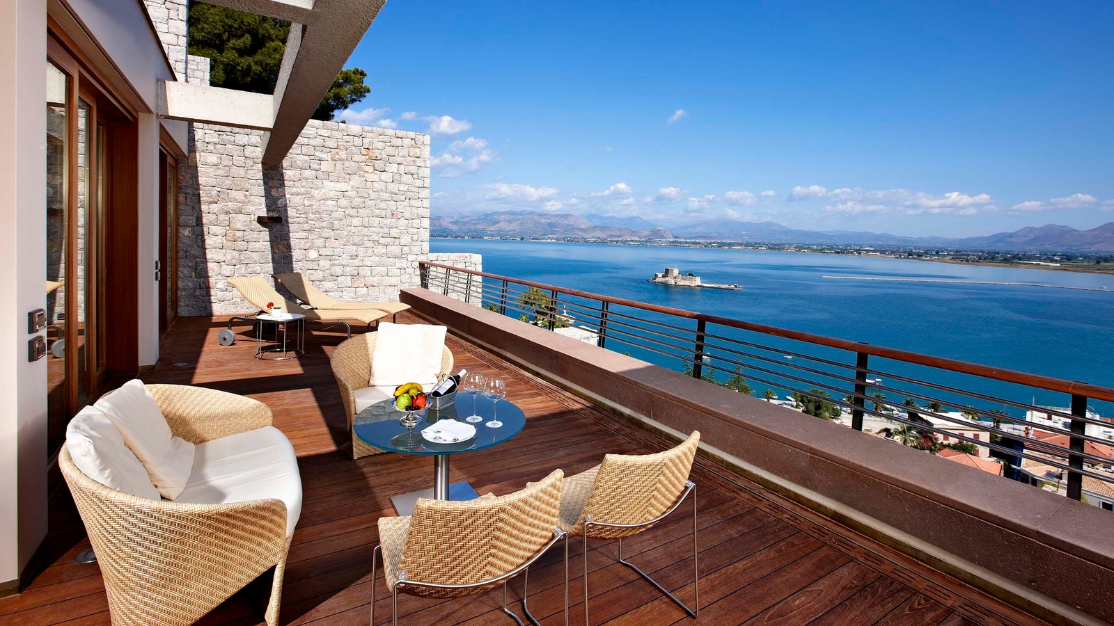 The Nafplia Palace Hotel & Villas sits atop the ancient acropolis of Akronafplia with fabulous sea views over the rooftops of Nafplion below.