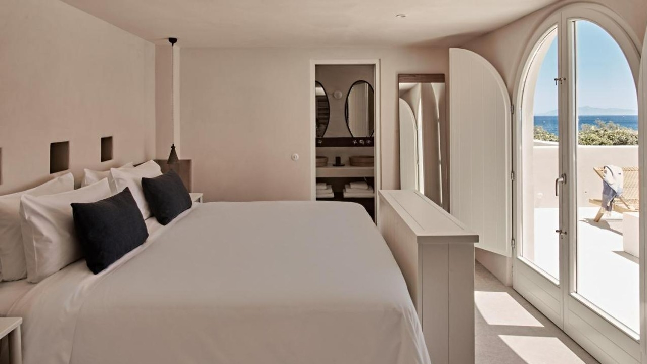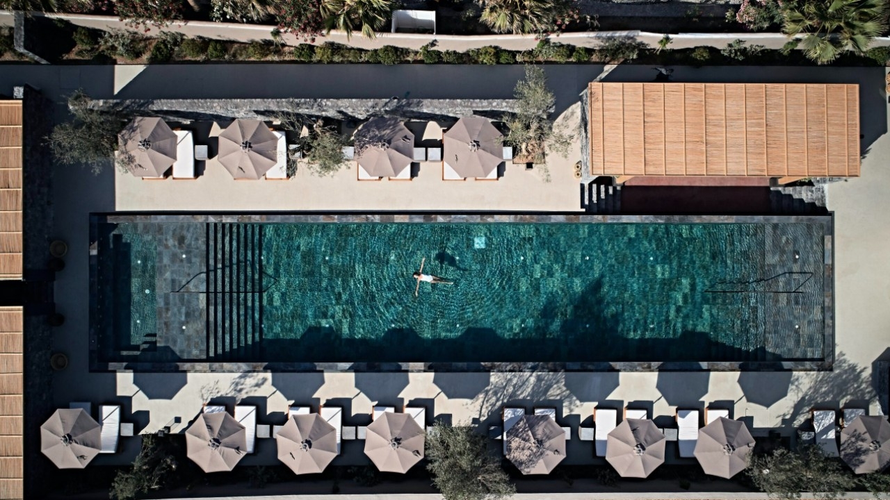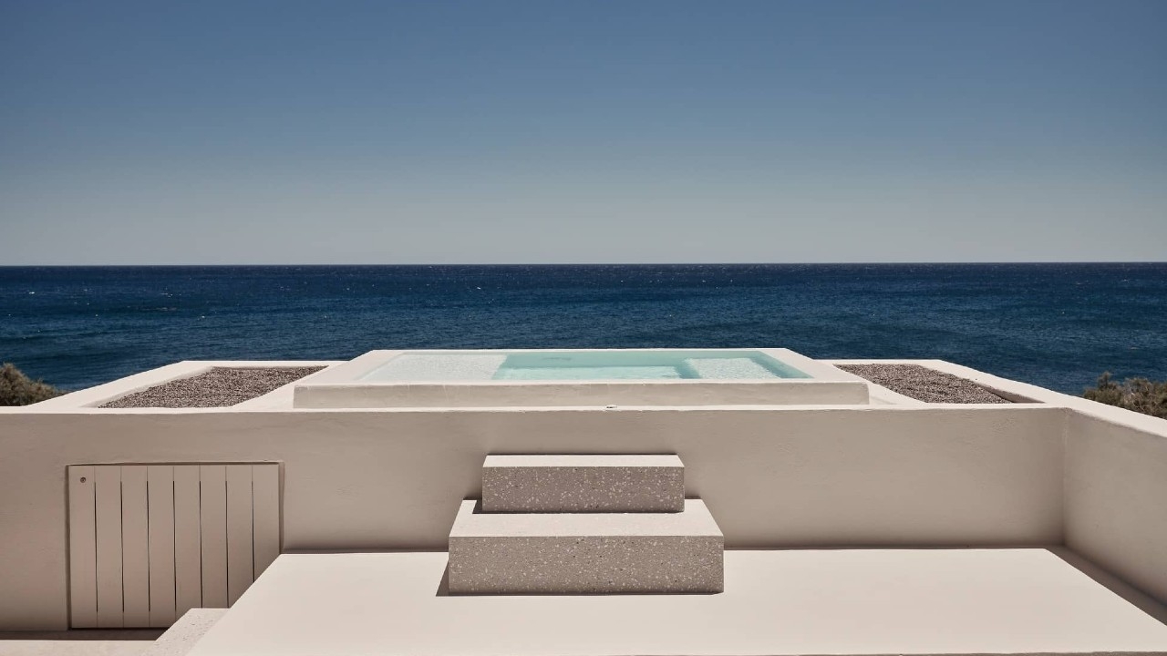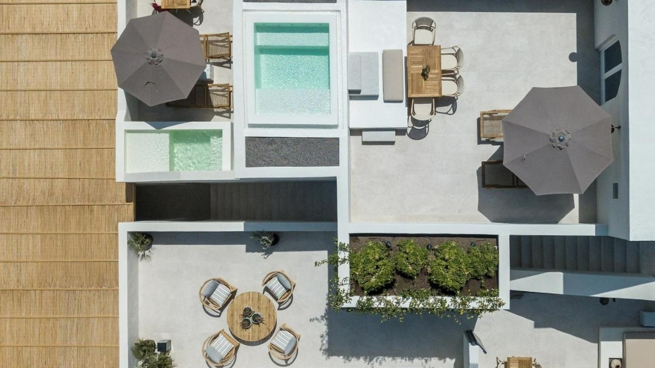 The hotel’s pool is impressively large, made with a spectacular green artisan tile work, ensconced within protective walls and surrounded by inviting sun loungers and to one side is the statement sunken pool bar. Mr. E Restaurant serves delicious Greek dishes, often reimagined but always instilling a splendid simplicity that suits the fresh, local ingredients. They serve an abundance of local seafood – best savoured with a glass of sublime Santorinian wine. The energy and dedication to wellness and tranquillity is summed up perfectly at the serene Elios Spa. Here guests can enjoy a range of treatments, pampering and a soak in the relaxing jacuzzi.