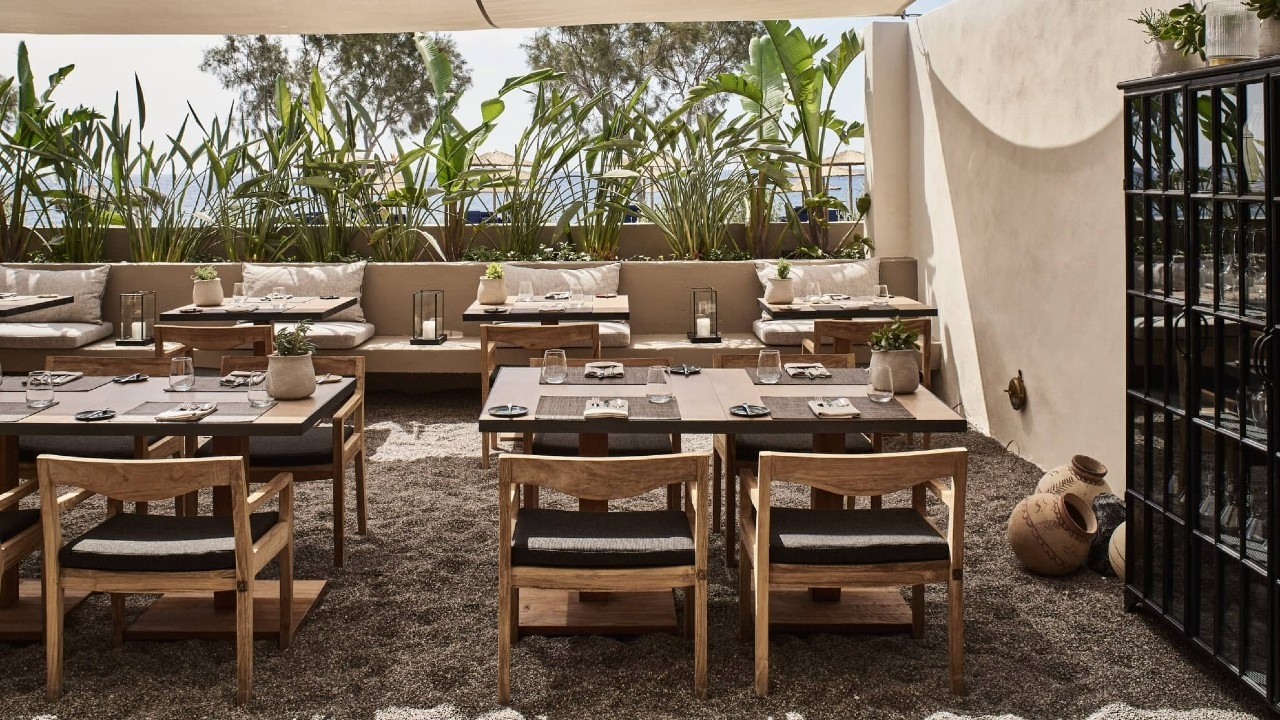 The Istoria sits on the black volcanic sand beach of Perivolos, on the famous island of Santorini. A modern and sophisticated retreat which has kept the true essence of Greek heritage through its design, decor and ethos. A place for sophisticated travellers to unwind, relax and soak up the atmosphere of the hotels ‘social hubs’.